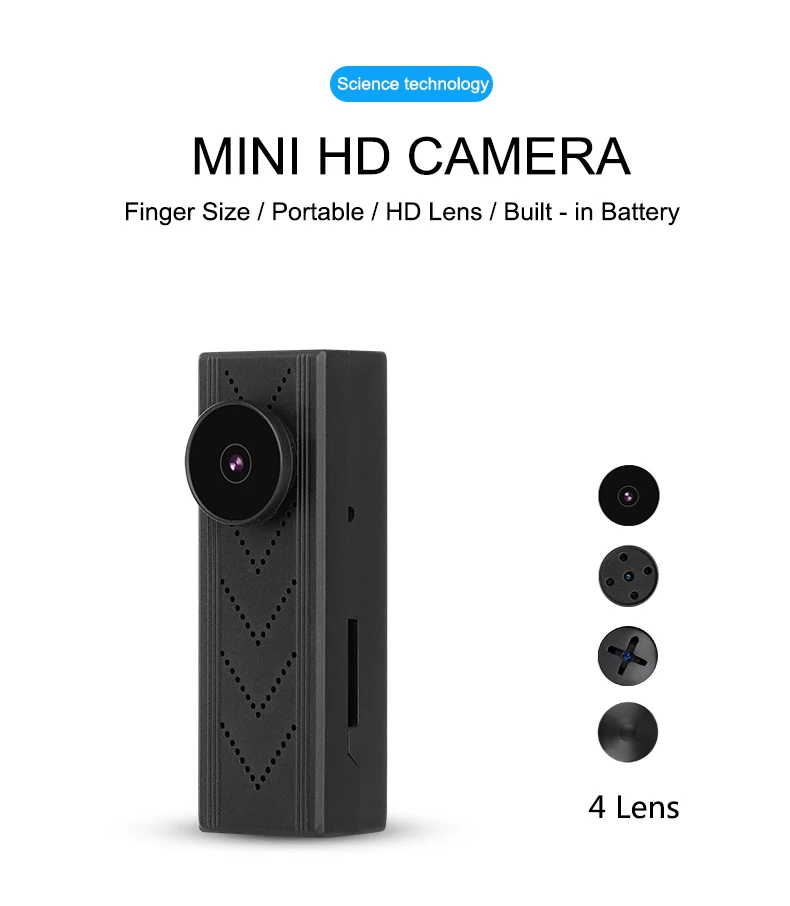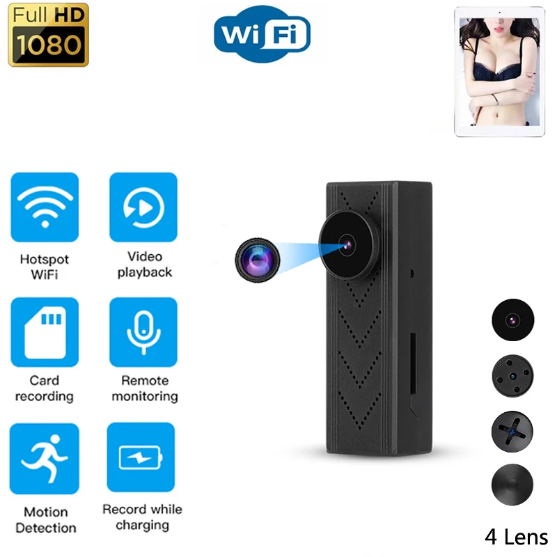 Мини-камера портативная с поддержкой Wi-Fi, 4 объектива HD