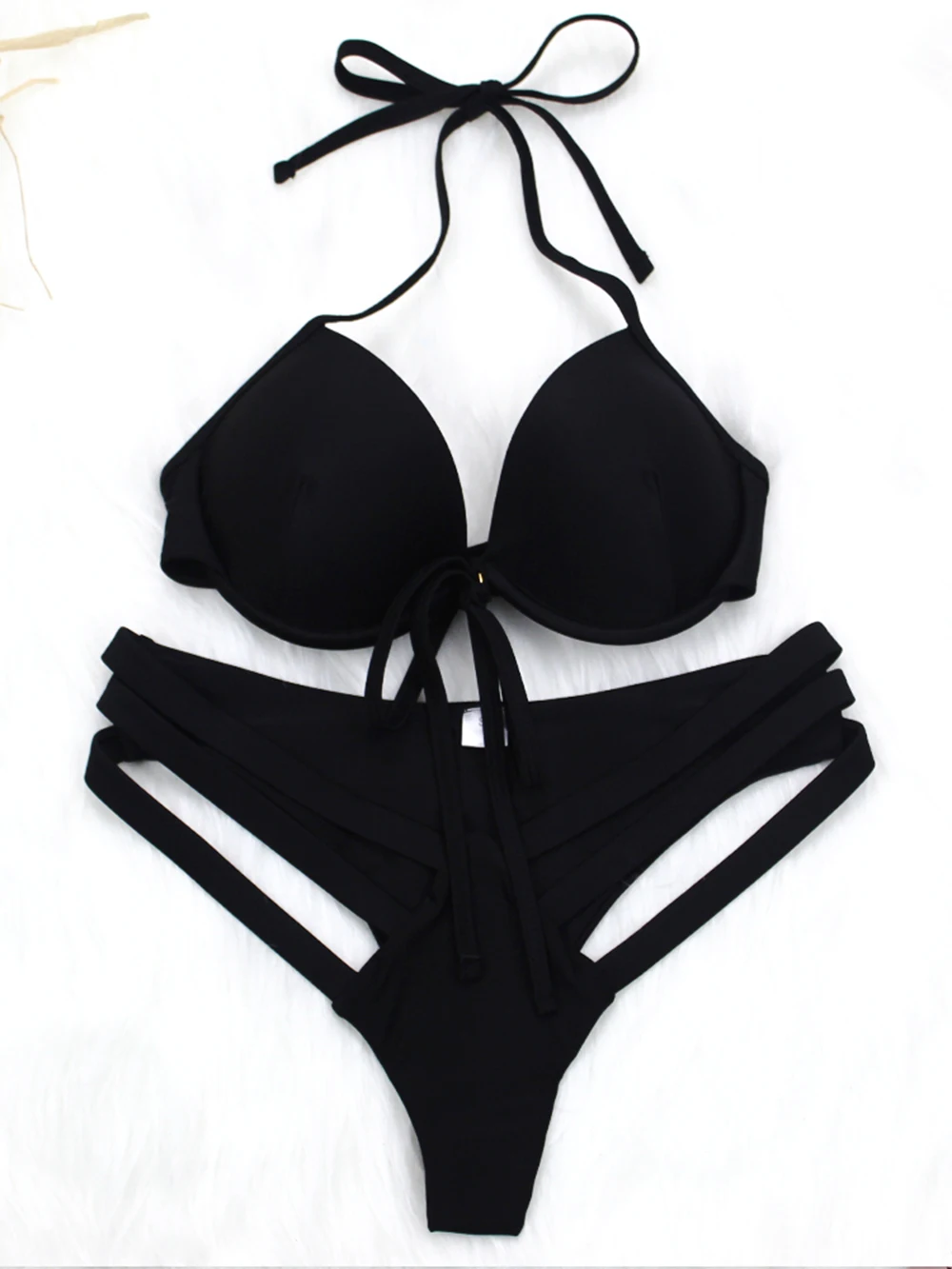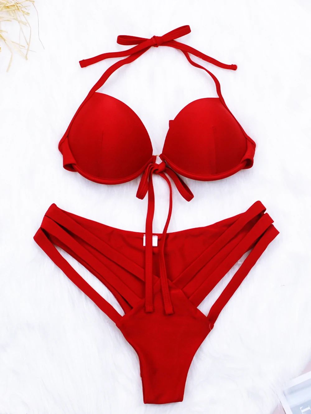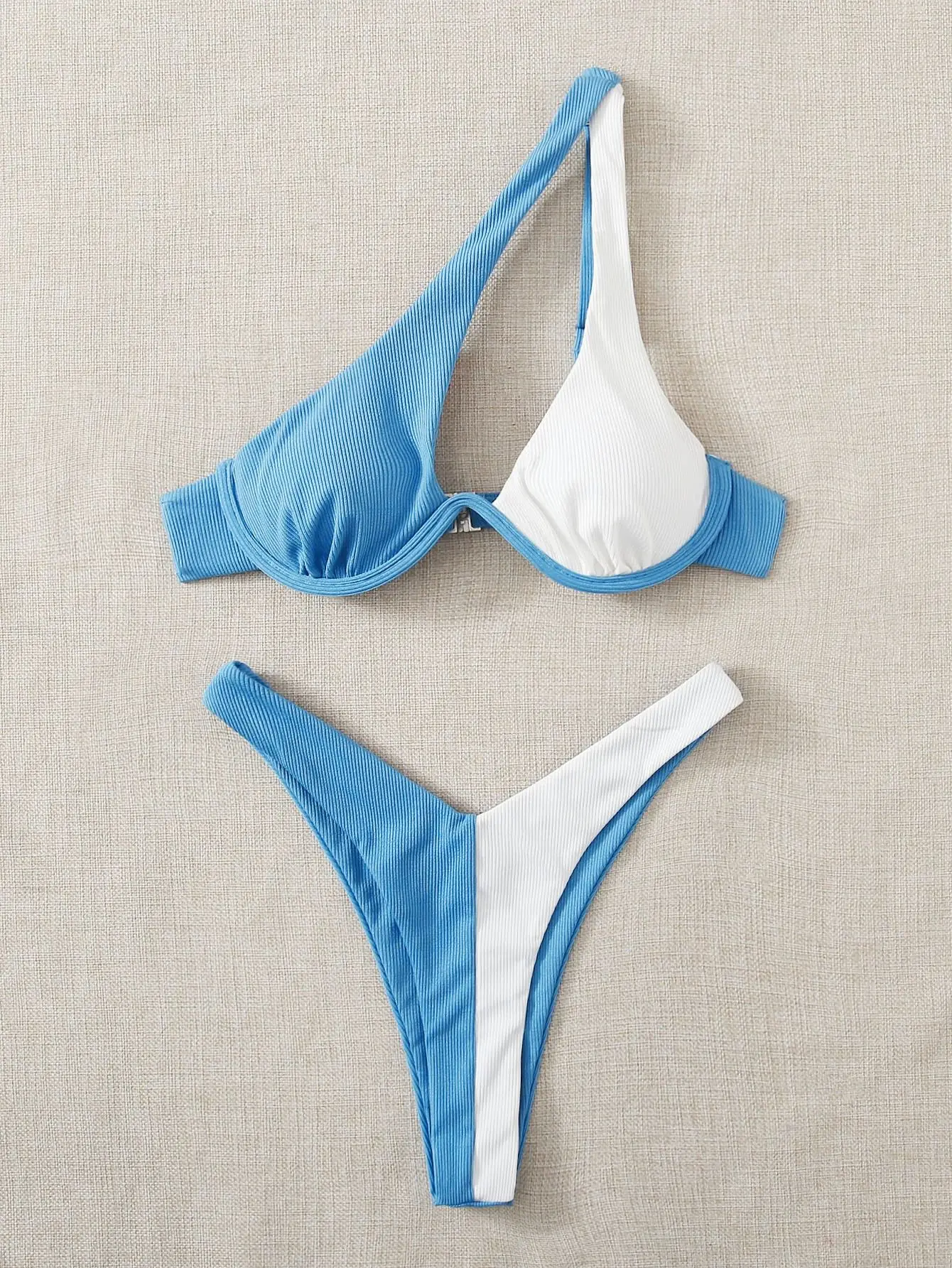 Бикини в рубчик, женский купальник с пуш-ап, купальник из двух частей, купальник с вырезами на косточках, комплект бикини на одно плечо, сексуальный купальный костюм, пляжная одежда
