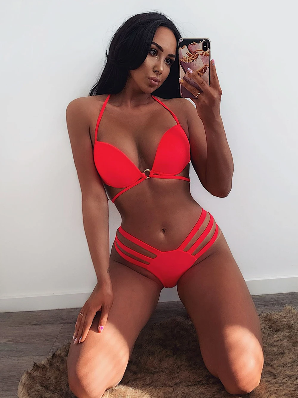 Я давно присматривалась к этой модели бикини, но переживала, что не смогу подобрать размер. Зря) на 88-67-96 выбрала S. Обычно бёдра чуть уже на 1-2 см, это все зимние каникулы сделали) Сейчас у плавок запаса нет. Чашки лифа комфортны, есть запас по глубине 2-3 см. Объём регулируется завязками. Дополнительные декоративные завязки я обрежу, без них мне больше нравится, тем более их длина недостаточна для того, чтоб полноценно завязать позади. Чашка плотная, формованная. Посадка плавок невысокая, не более 21 см. Ширина по верхней части плавок около 72 см. Растягиваются они не сильно. Пошив купальника хороший. Носить точно буду, но без лишней лямки. Рекомендовать могу. Да, отправка быстрая, буквально через день, за что спасибо)