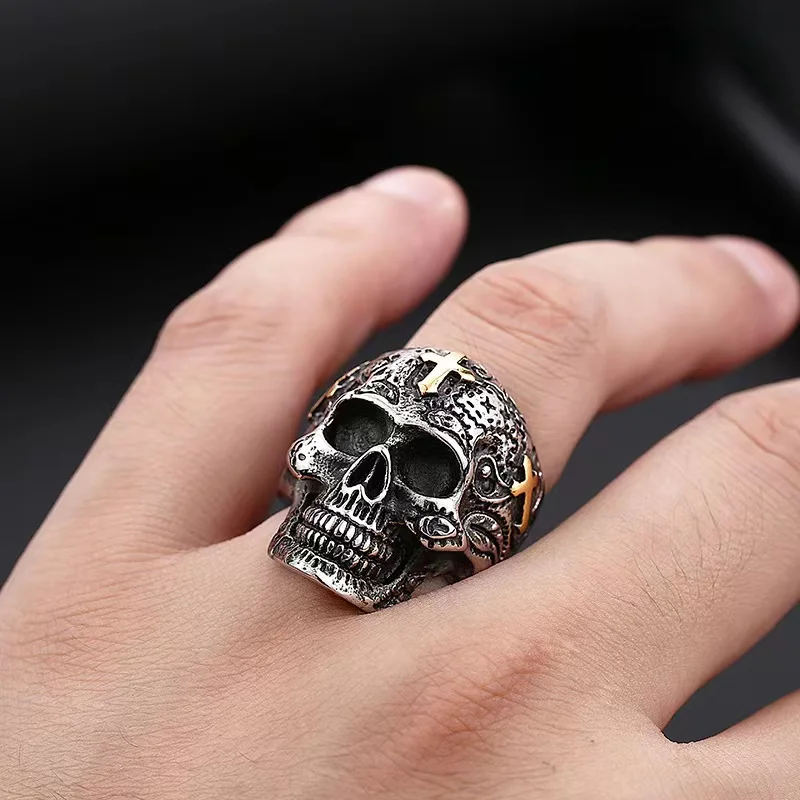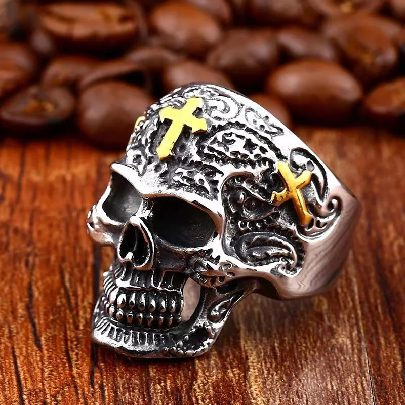 кольца для подростков кольца 2022 тренд перстень мужской подарок мужчине прикольные штучки Мужские кольца в ретро-стиле с черепом и перекрестными узорами
