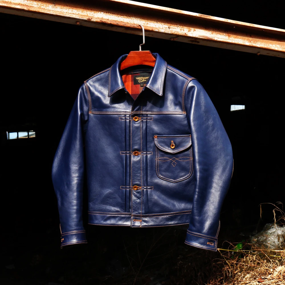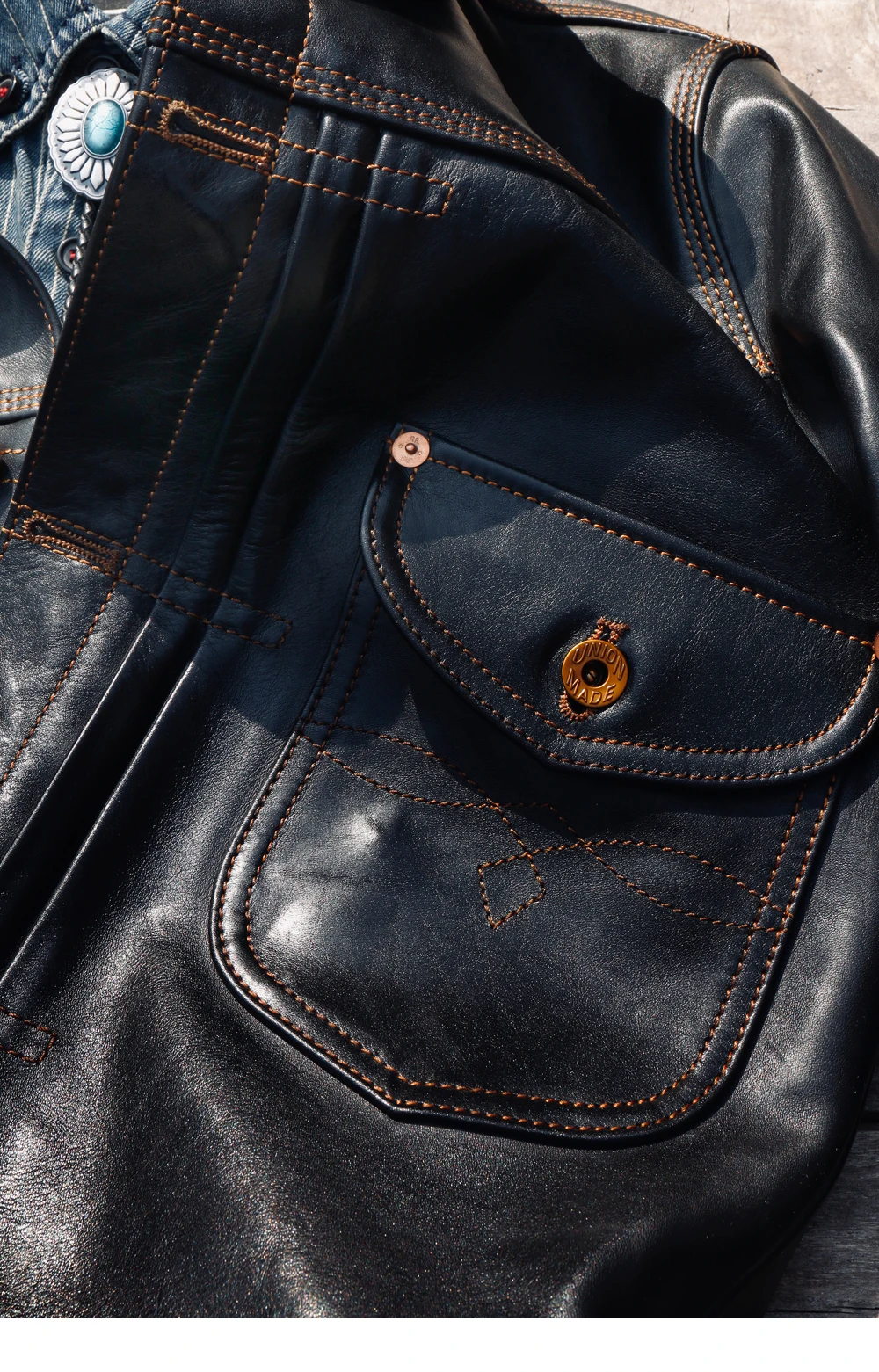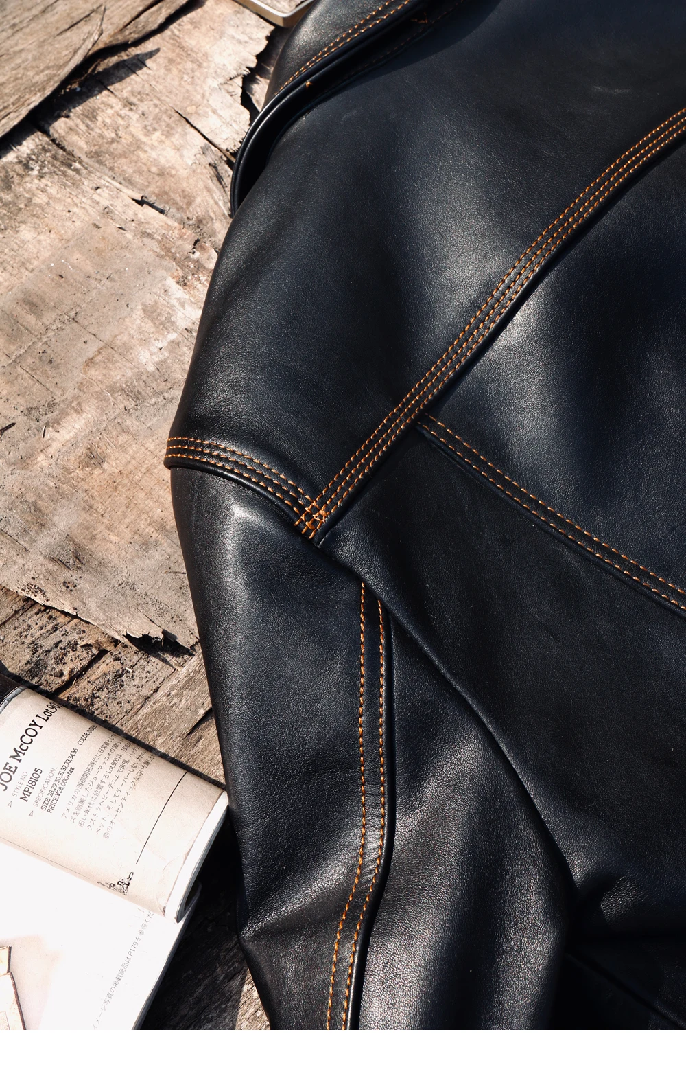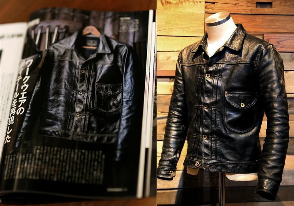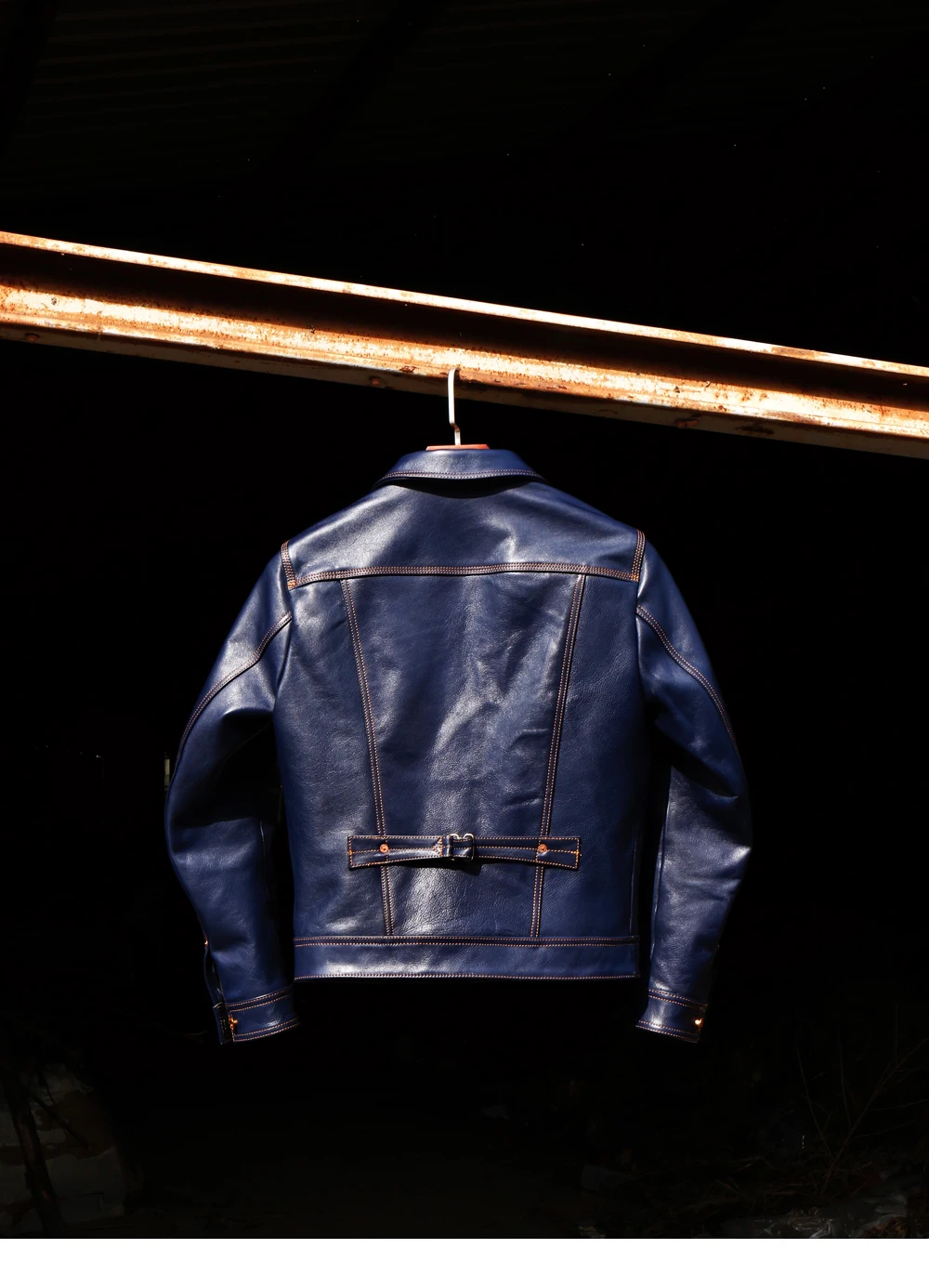 Мужская приталенная винтажная куртка из натуральной итальянской тосканной коровьей кожи азиатского размера