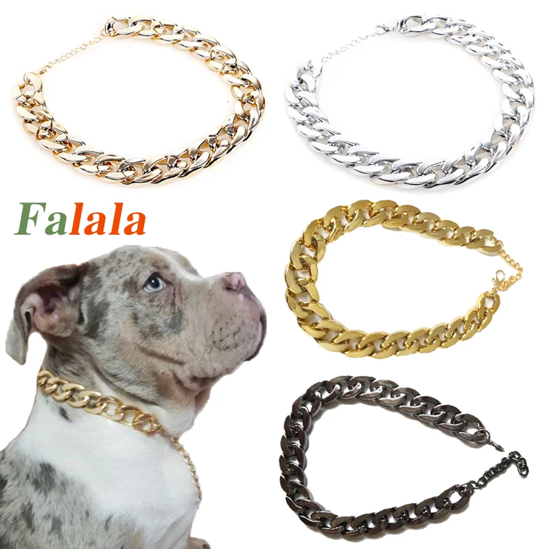 Модный Блестящий серебристыйзолотистый ошейник для собак, цепочка для закусок, металлический стиль, Тедди, французский бульдог, ожерелье, подарок для искусственных собак