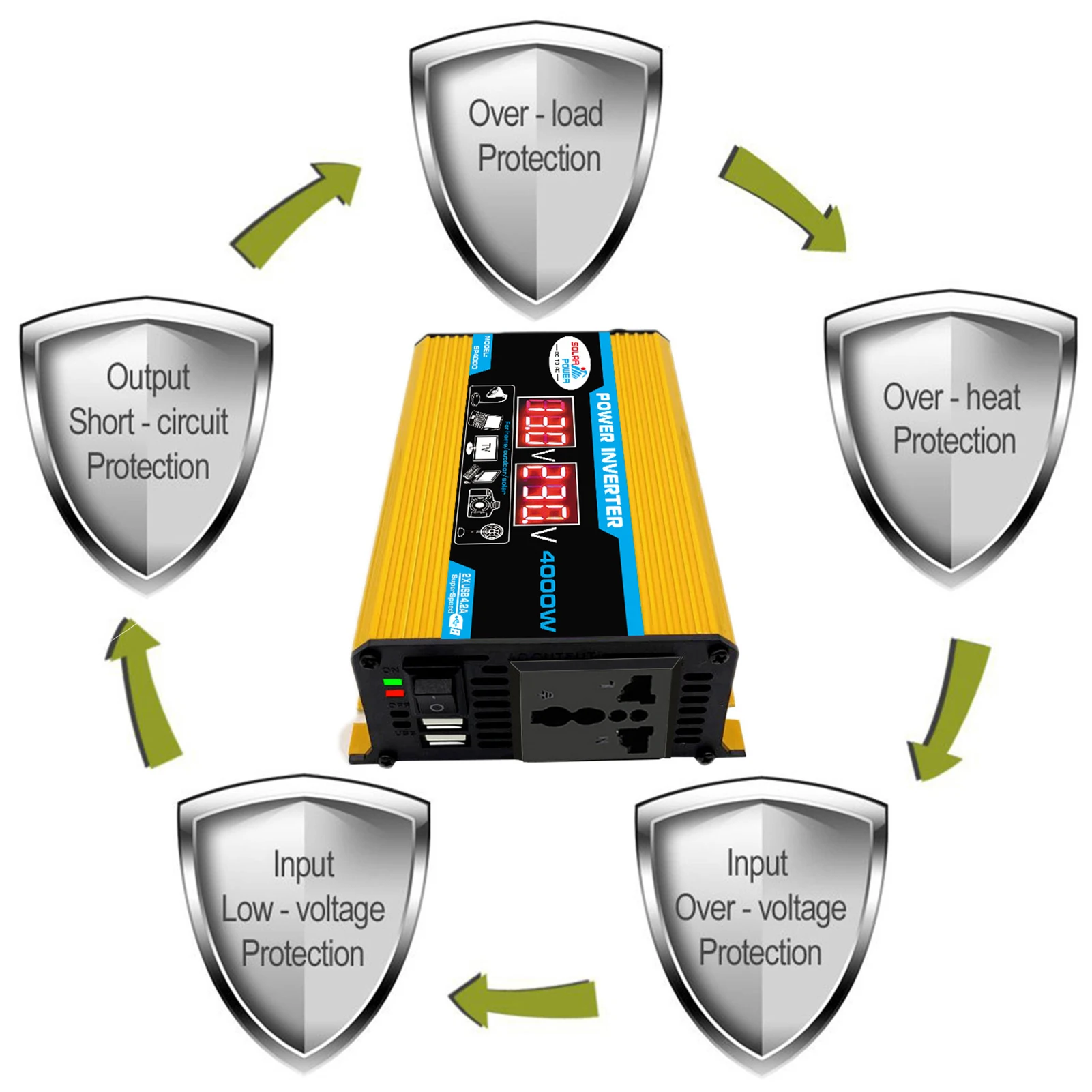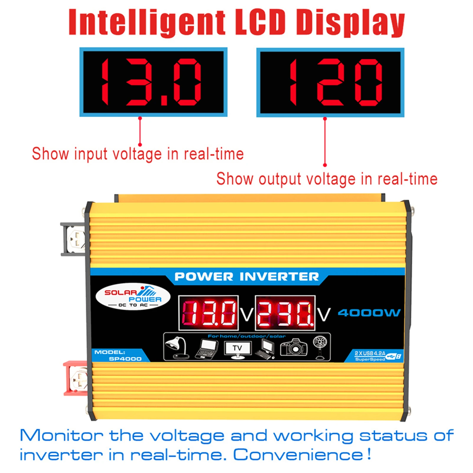 Автомобильный инвертор 4000 Вт мощность 12 В постоянного тока в 110 В переменного тока220 В двойной USB-адаптер для зарядки конвертер с ЖК-дисплеем SP4000 инвертор мощности