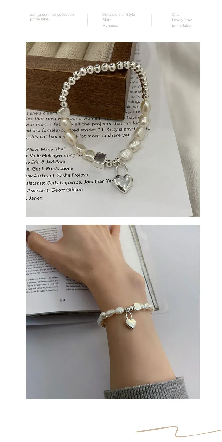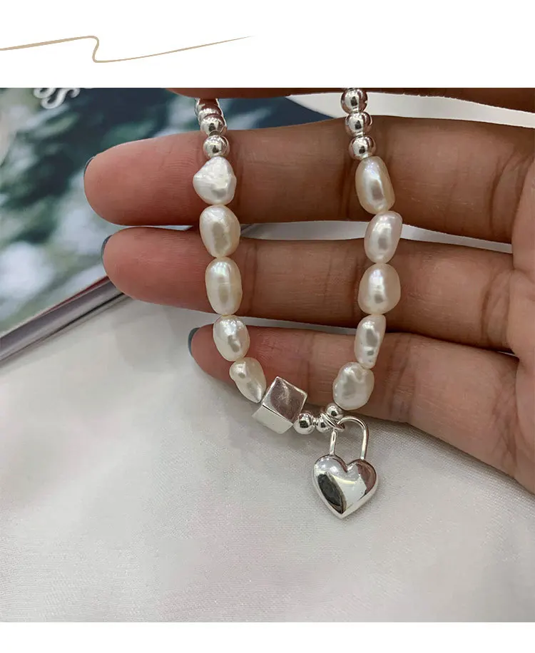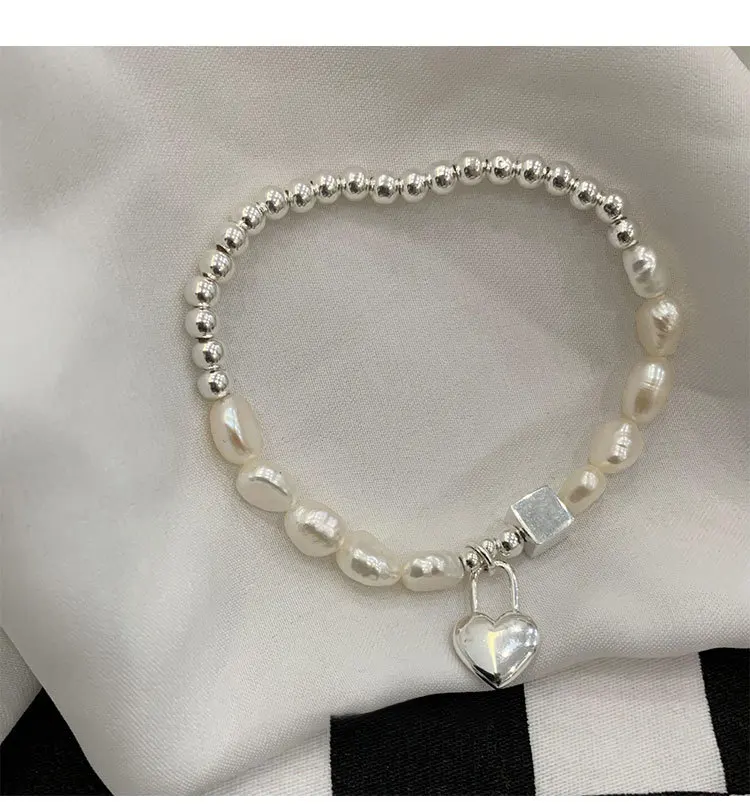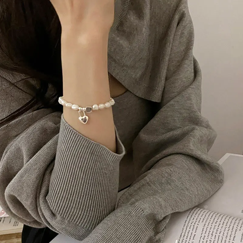 Барокко Жемчуг ЛЮБОВЬ сердце кубик бусы браслет для женщин Эластичн...