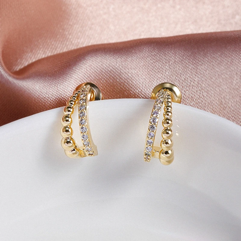 Золотистого и серебристого цветов; Цвет уха пряжки мяч серьги-гвоздики для женщин простой изящный CZ серьги из циркона, украшения аксессуары подарок LE1476