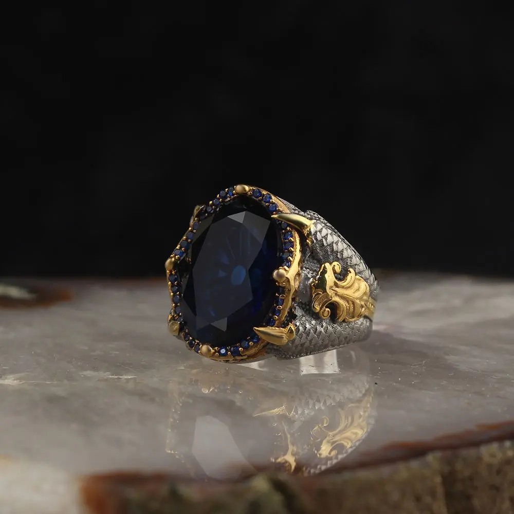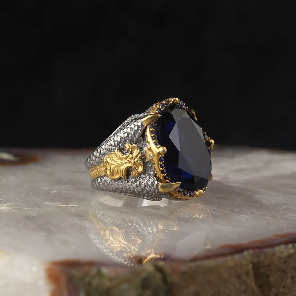 Мужское кольцо из стерлингового серебра с голубым цирконием и искус...