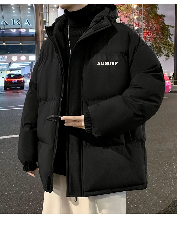 Уличная мода Зимняя хлопковая куртка для мужчин Мода Теплые мужские парки С шапкой Мужское хлопковое пальто Oversize Мужская одежда