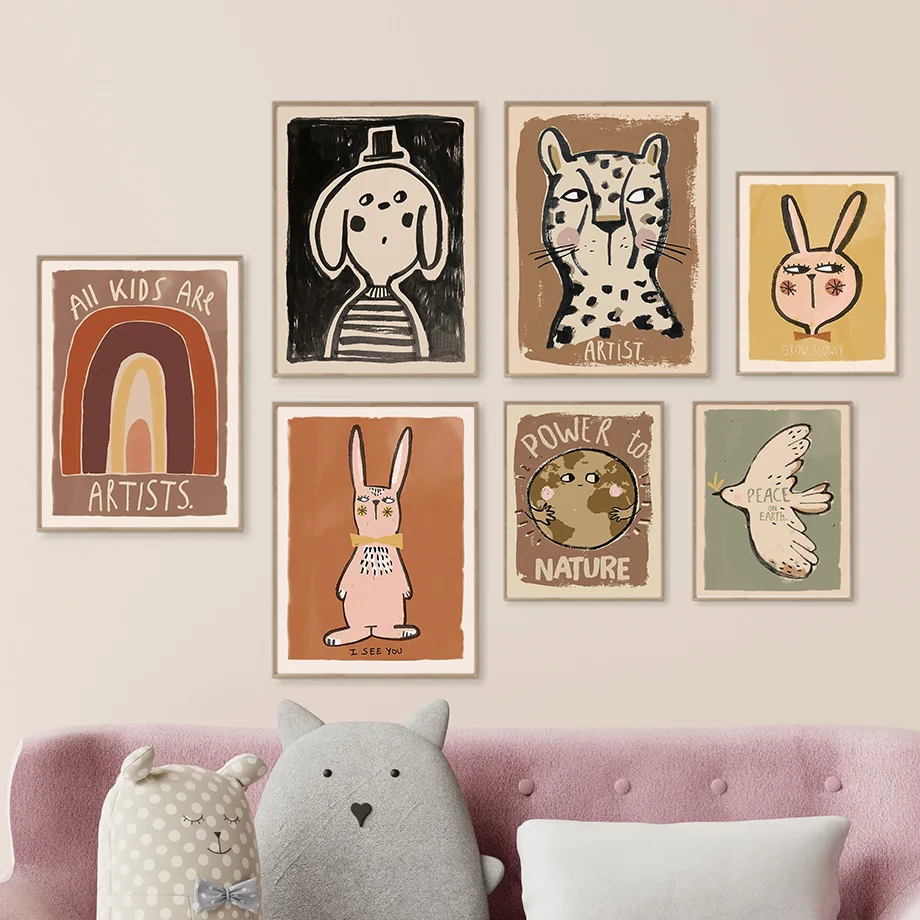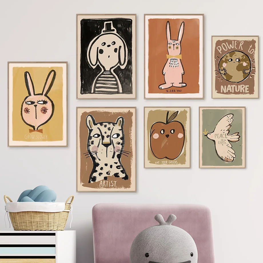 Милый кролик Леопард собака кошка детская настенная Картина на холс...
