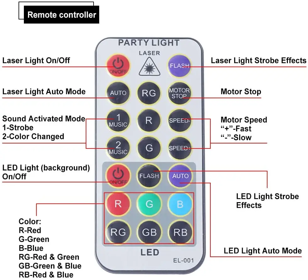 【 Многоцветная модель 】обновленная версия для нескольких эффектов и высокой яркости 3. Комбинации пучков (красный, зеленый, красный и зеленый) ,6 цветов светодиодного фона (красный/зеленый/синий/розовый/светло-голубой/orange). Вечерние огни создают различные световые эффекты, которые сделают вас более счастливыми!