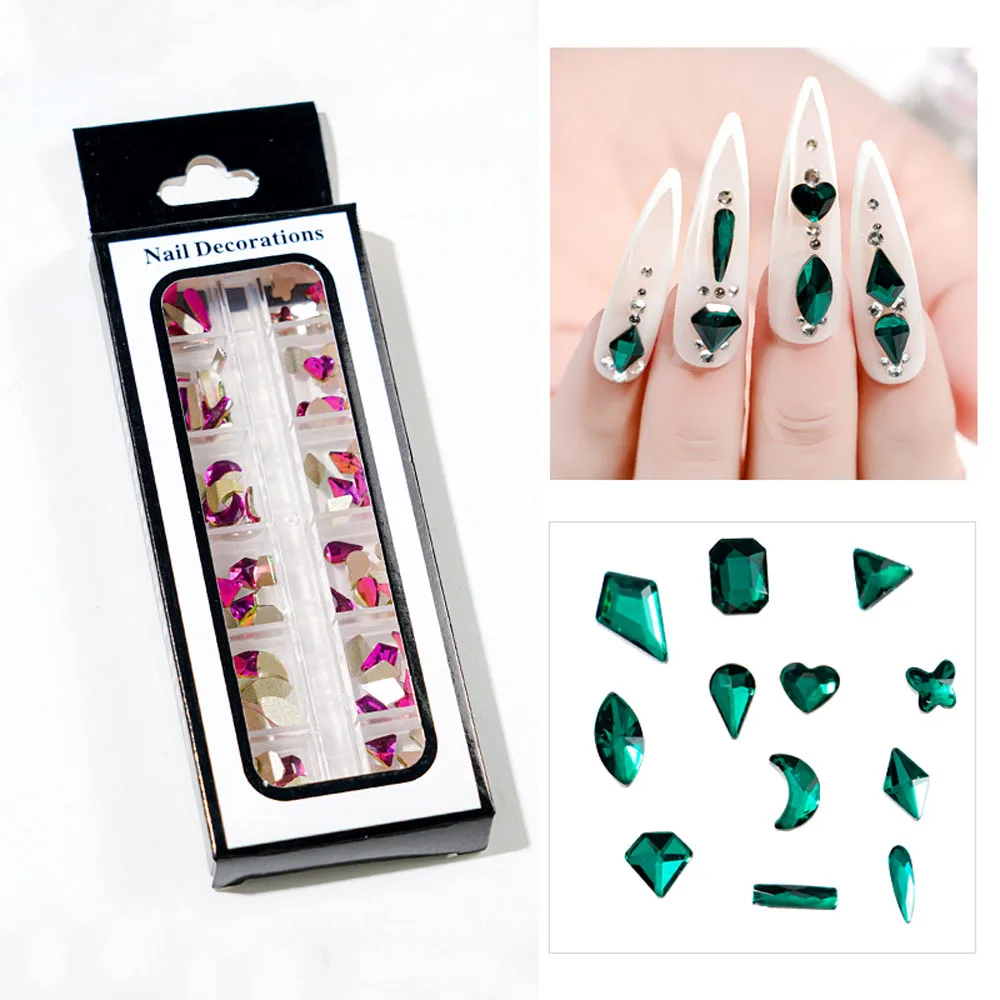 12Girdкоробка, смешанные формы, Стразы для ногтей 3D ABGold, горячая фиксация, плоская задняя часть, Кристальный бриллиант, драгоценный камень, сделай сам, блестящий камень, украшение для ногтей, BP #4
