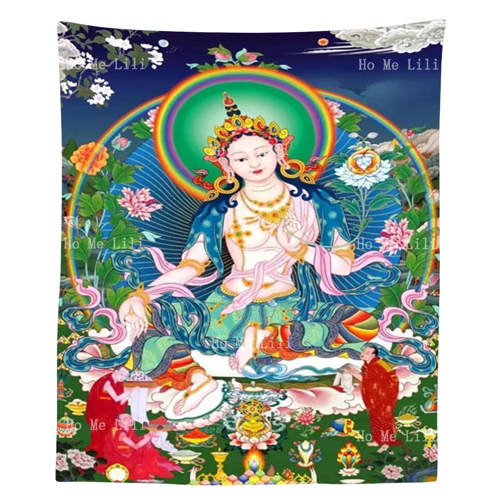 Религия Hinduism искусство Будда Зеленая Тара танка сидят на лотосе и Луне колесо богиня Дурга на Тигре гобелен от Ho Me Lili