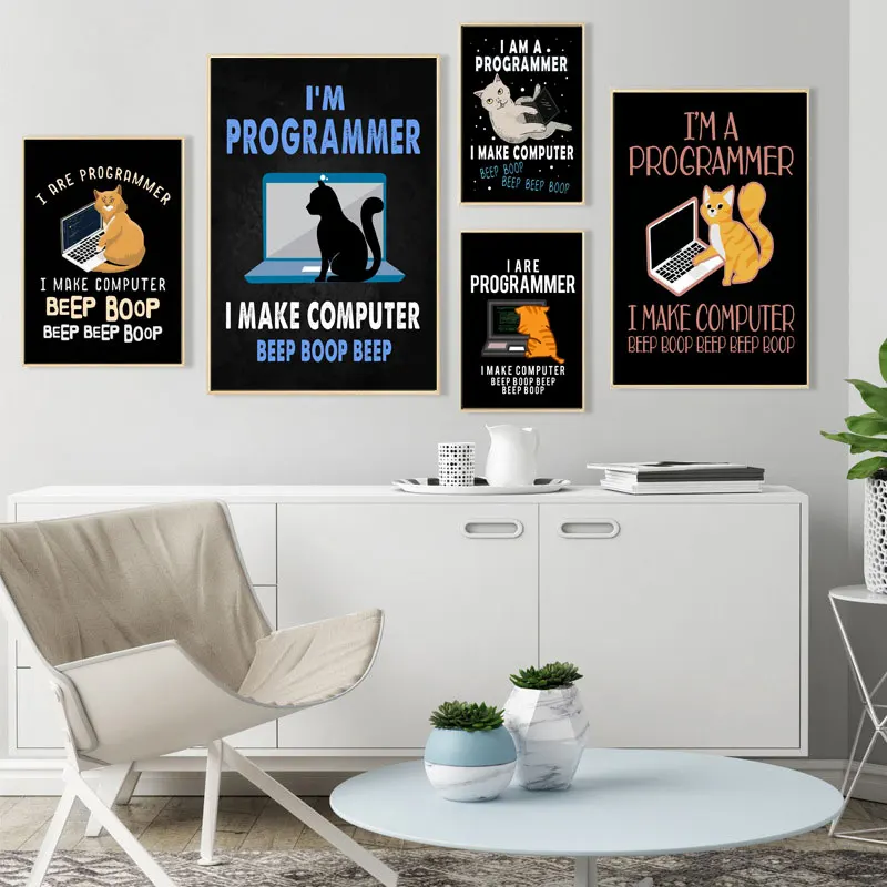 Программатор я делаю компьютерный звуковой сигнал Boop, печать на холсте с животными, живопись, настенные художественные плакаты, картина для гостиной, спальни, Декор