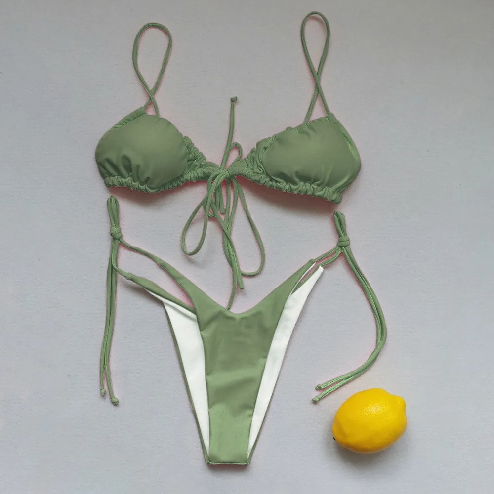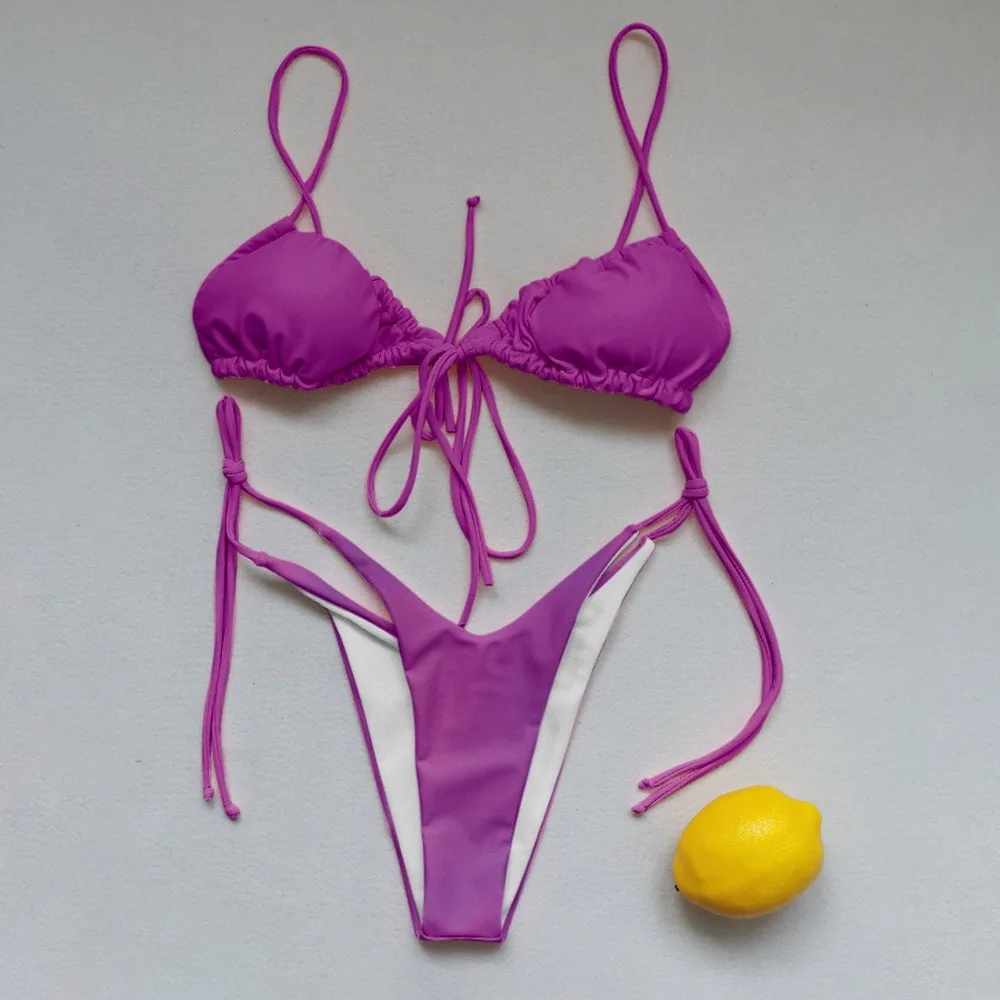 Сексуальное бикини 2021, женские Купальники пуш-ап, Женский комплект микро-бикини, однотонные стринги, купальный костюм, пляжная одежда, бразильское бикини