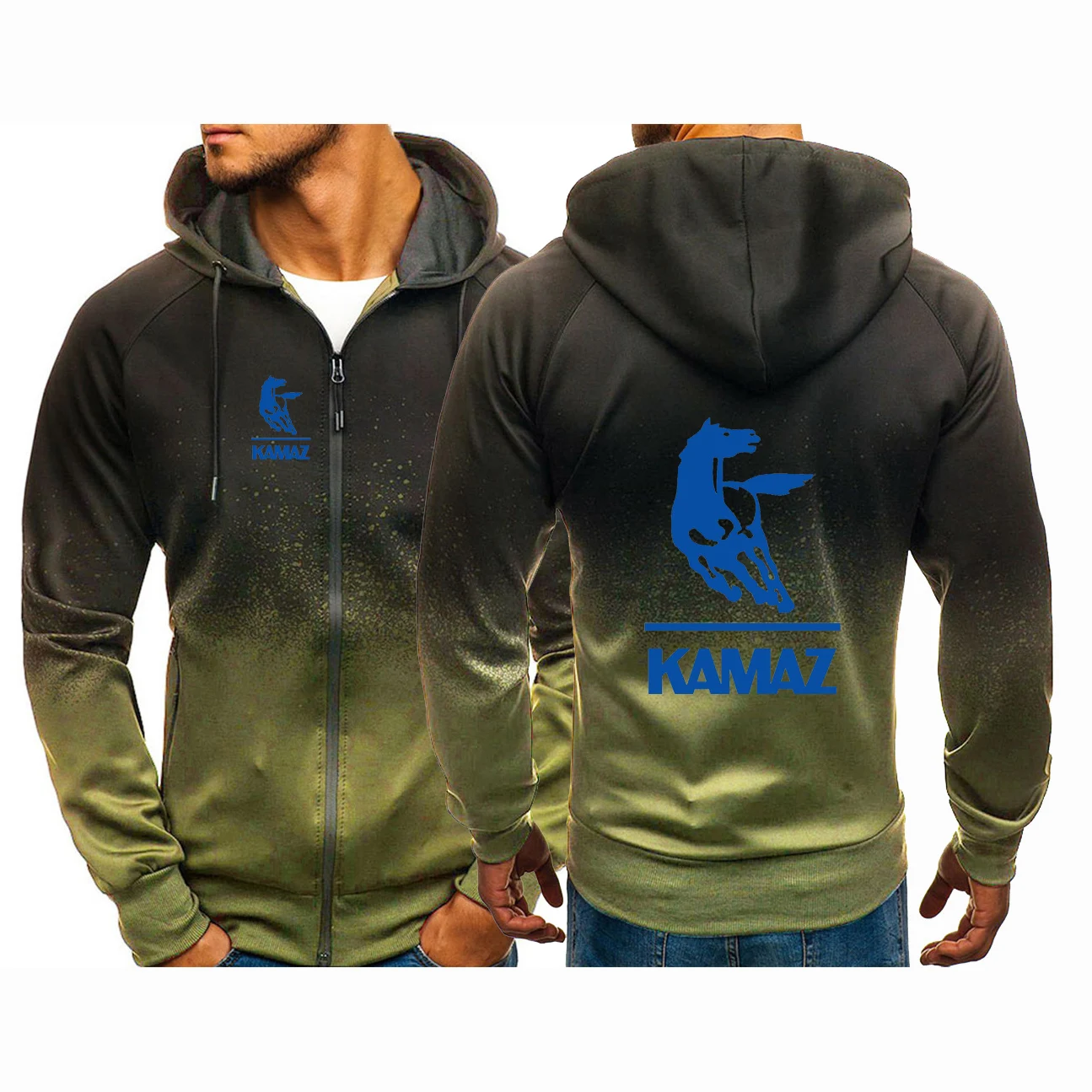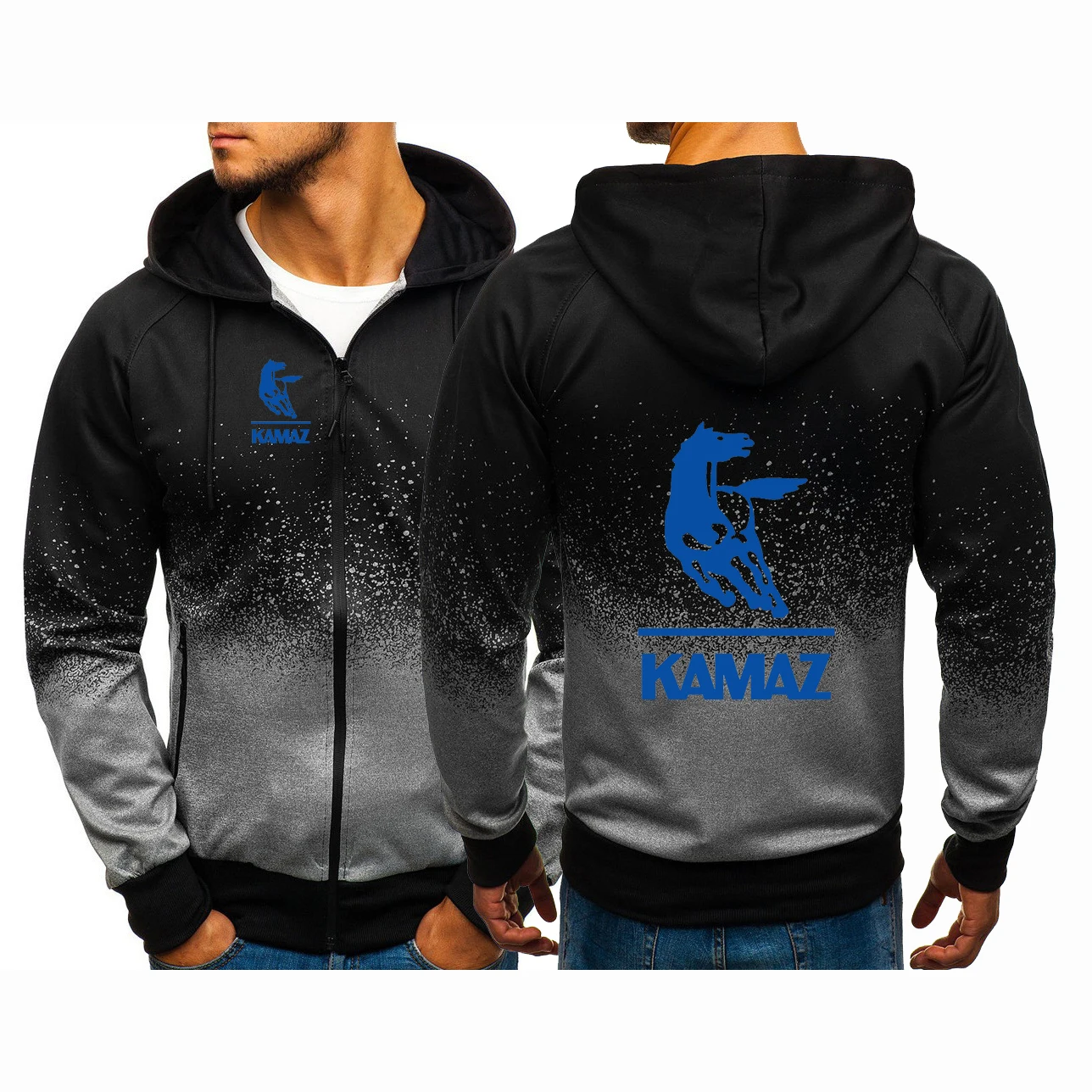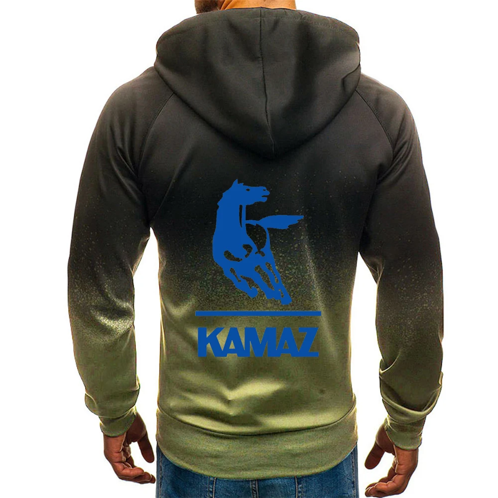 Толстовка мужская с капюшоном и принтом КАМАЗа, в стиле Харадзюку, в стиле хип-хоп, удобная уличная куртка на молнии с градиентом, новинка 2022
