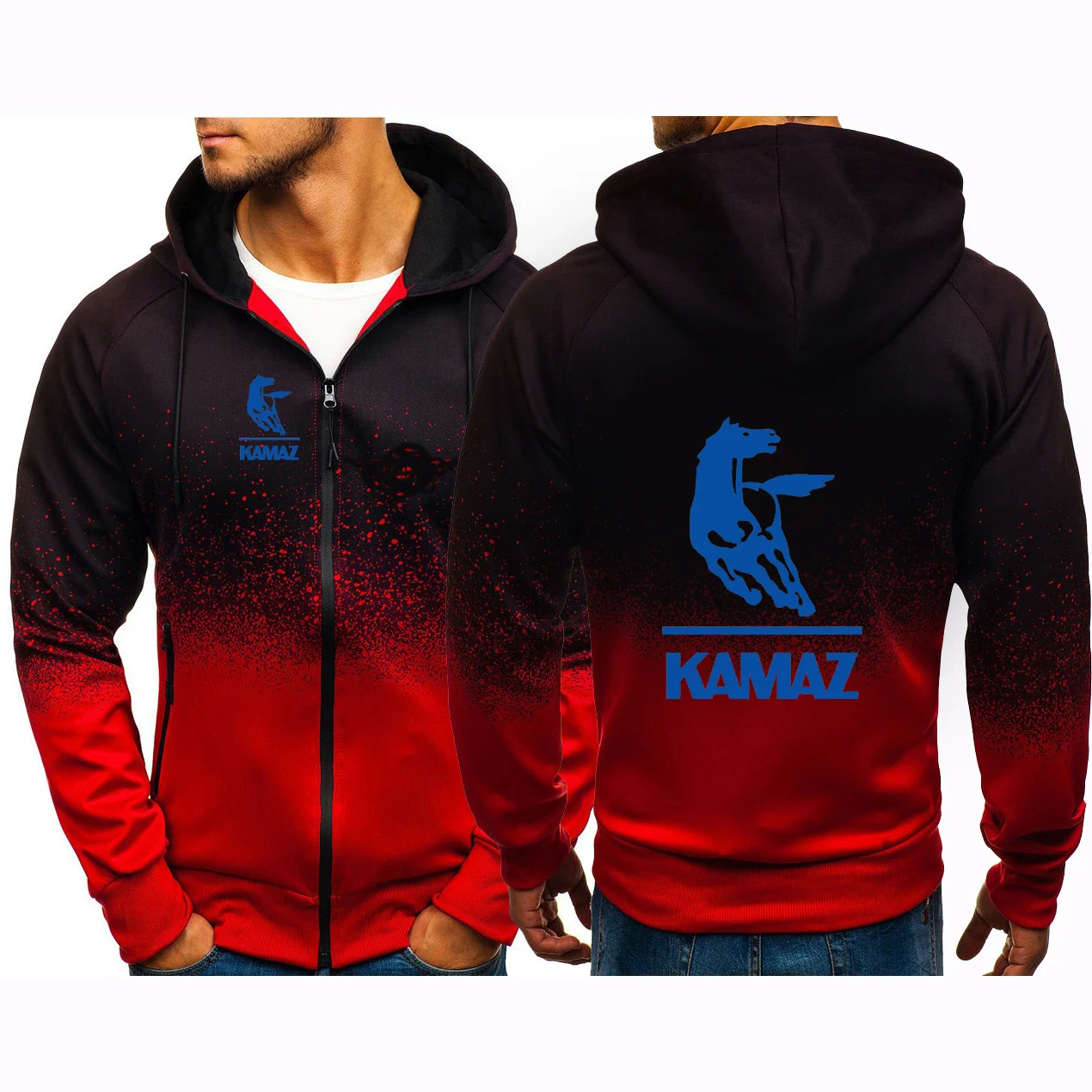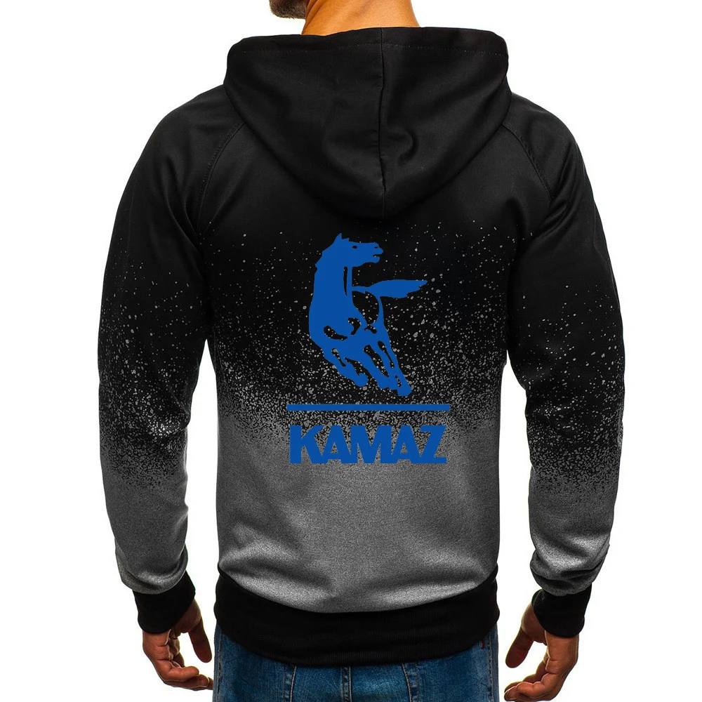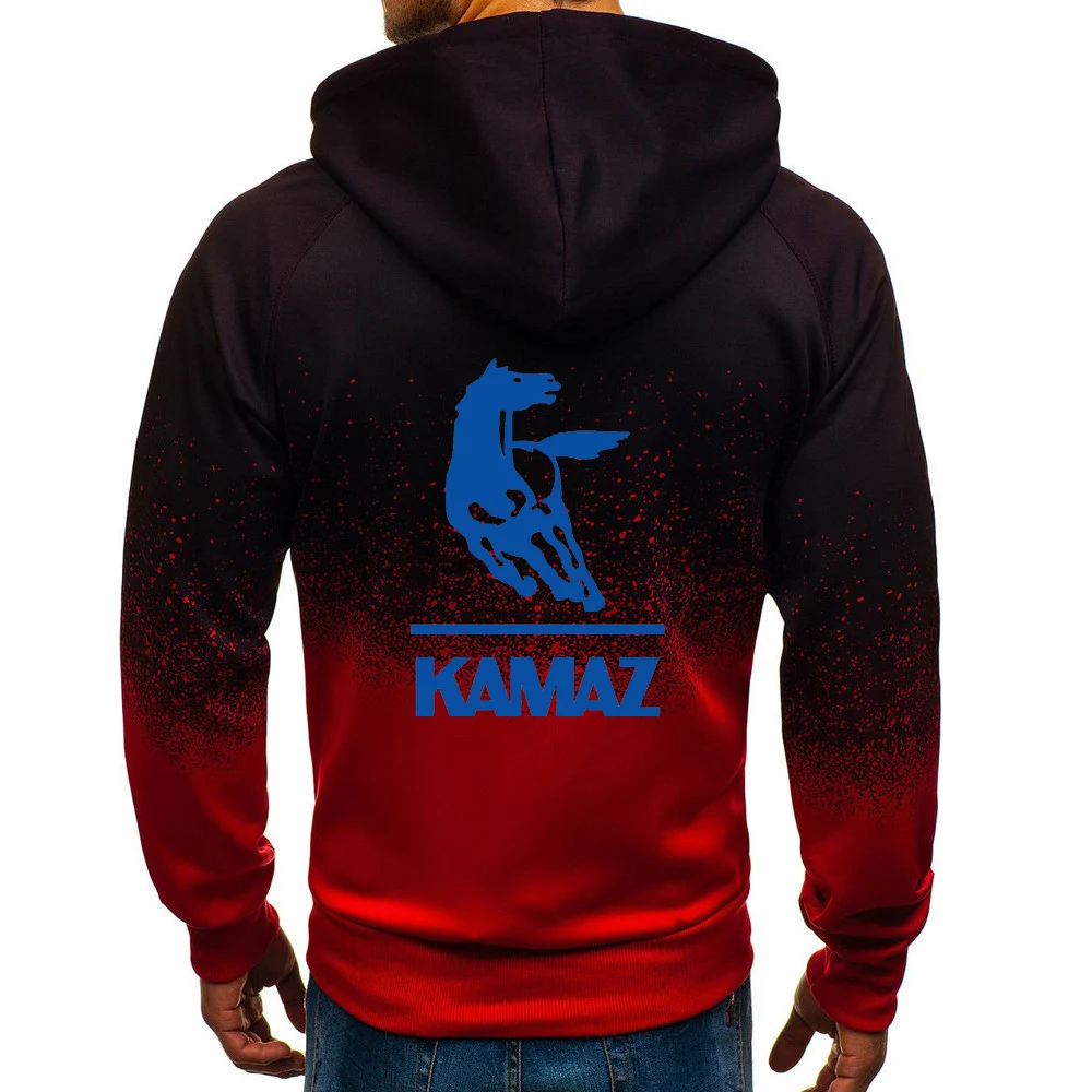 Толстовка мужская с капюшоном и принтом КАМАЗа, в стиле Харадзюку, в стиле хип-хоп, удобная уличная куртка на молнии с градиентом, новинка 2022