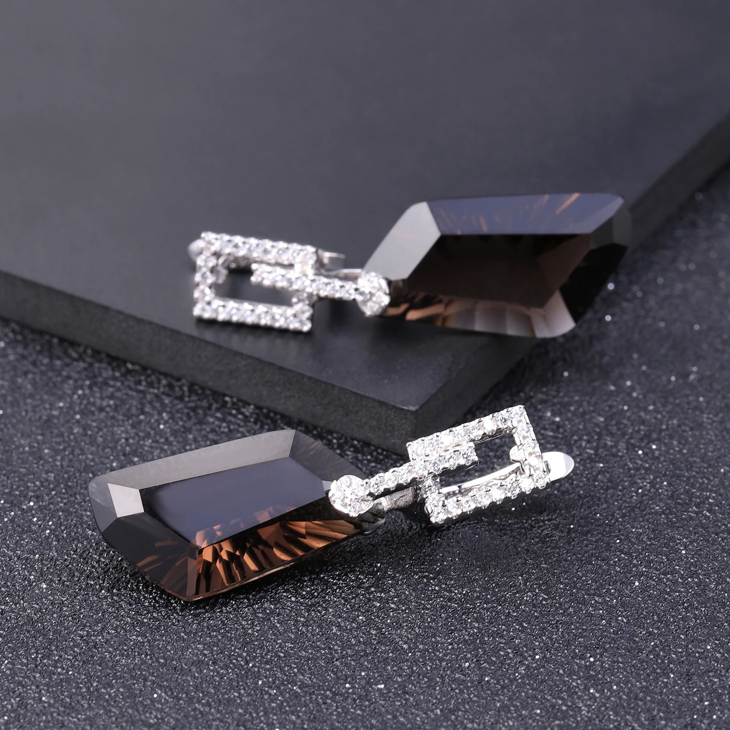Женские серьги-подвески из серебра 925 пробы, с натуральным дымчаты...