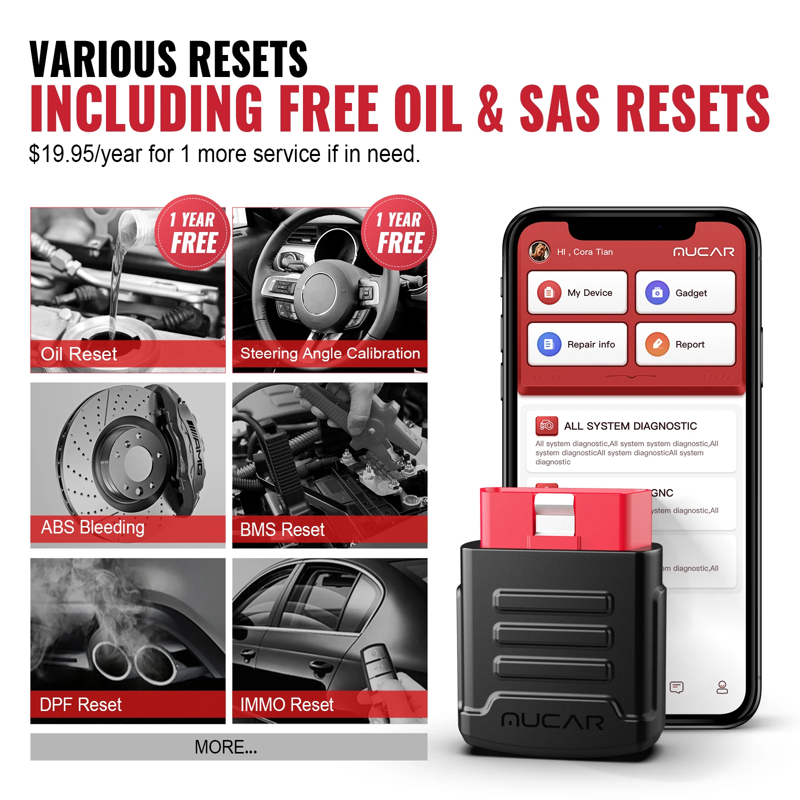 MUCAR BT200 полная система диагностики масло сканера SAS 15 сброс Bluetooth iOS и Android считыватель кодов и сканирующие инструменты для всех автомобилей