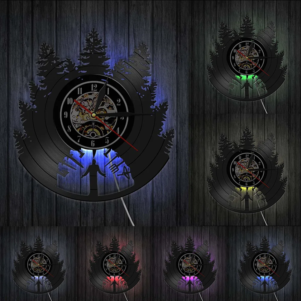 Светодиодные настенные часы с виниловой пластиной, 7 разных цветов