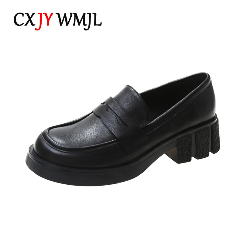 Весенние женские лоферы CXJYWMJL из натуральной кожи в британском стиле, первого слоя воловьей кожи, модная Женская Осенняя модель с круглым носком