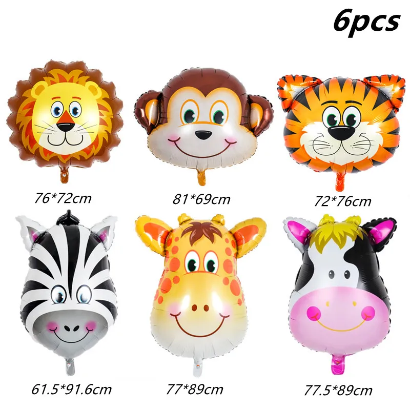 6 шт., алюминиевые фольгированные воздушные шары в виде животных