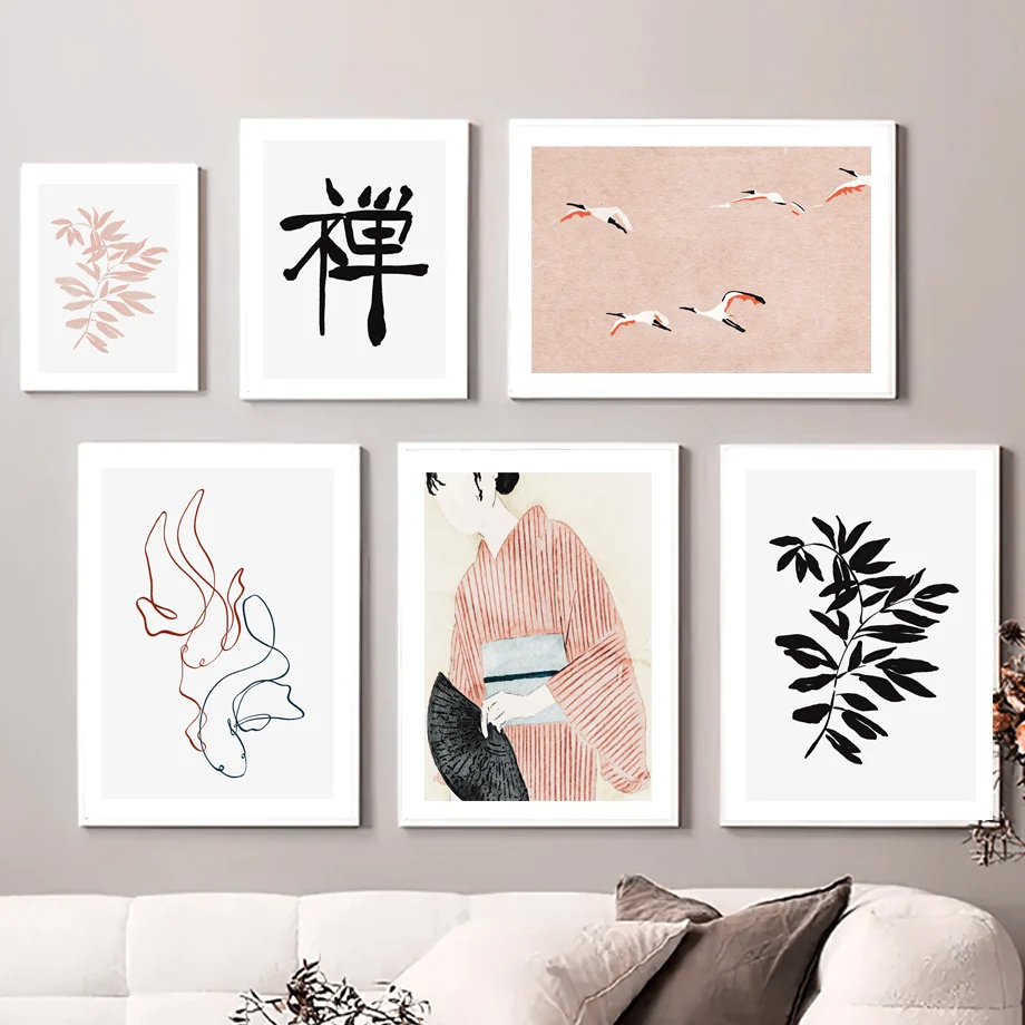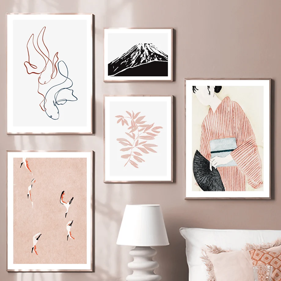 Настенная Картина на холсте Fuji Crane JapanGeisha Zen, скандинавские плакаты и принты для гостиной, японский Декор