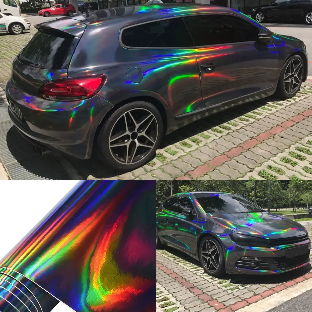 Голографические лазерные хромированные черные автомобильные наклейки, обмотка для кузова салона, виниловая пленка, лист черного цвета с фотоэлементами, аксессуары для тюнинга автомобиля