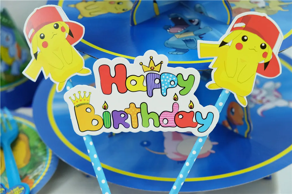 Покемон флажок на день рождения мультфильм аниме фигурка баннеры Пи...