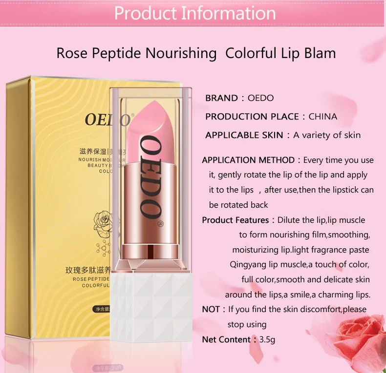 Пептид розы OEDO, питательный красочный бальзам для губ, губная помада, восстанавливающий эффект, крем для губ, розовый пептид, питательный бальзам для губ
