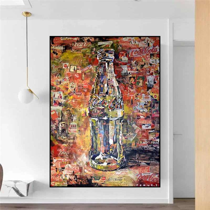 Уличные граффити, стеклянные бутылки, поп-арт, картины на холсте, настенные художественные плакаты и принты, Современная гостиная, домашний декор