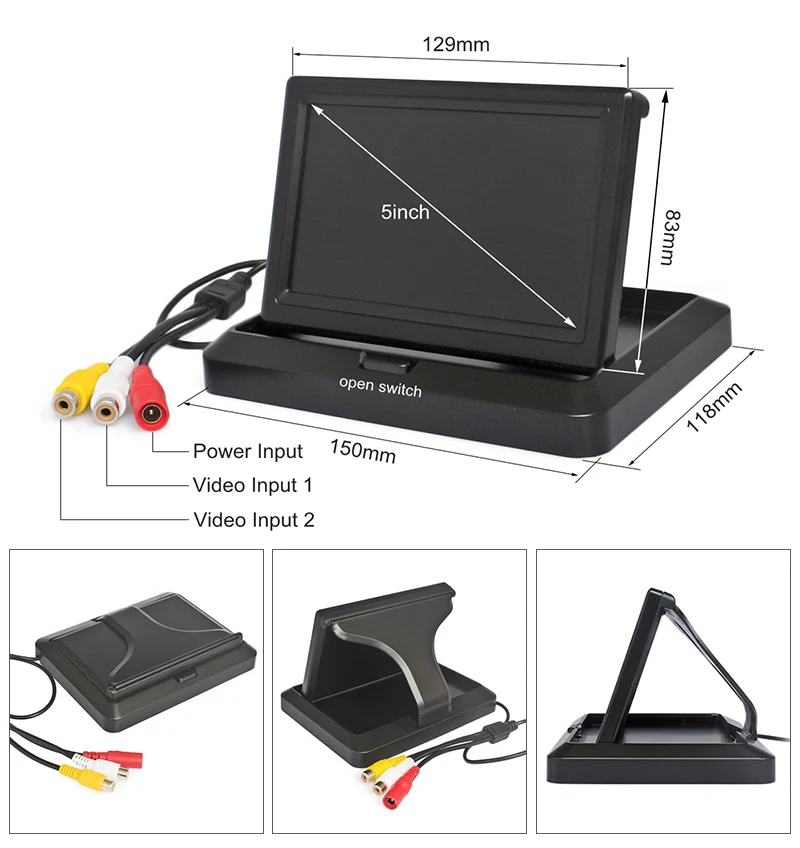 5 "складной TFT LCD автомобильный монитор заднего вида для камеры DVD видеомагнитофон