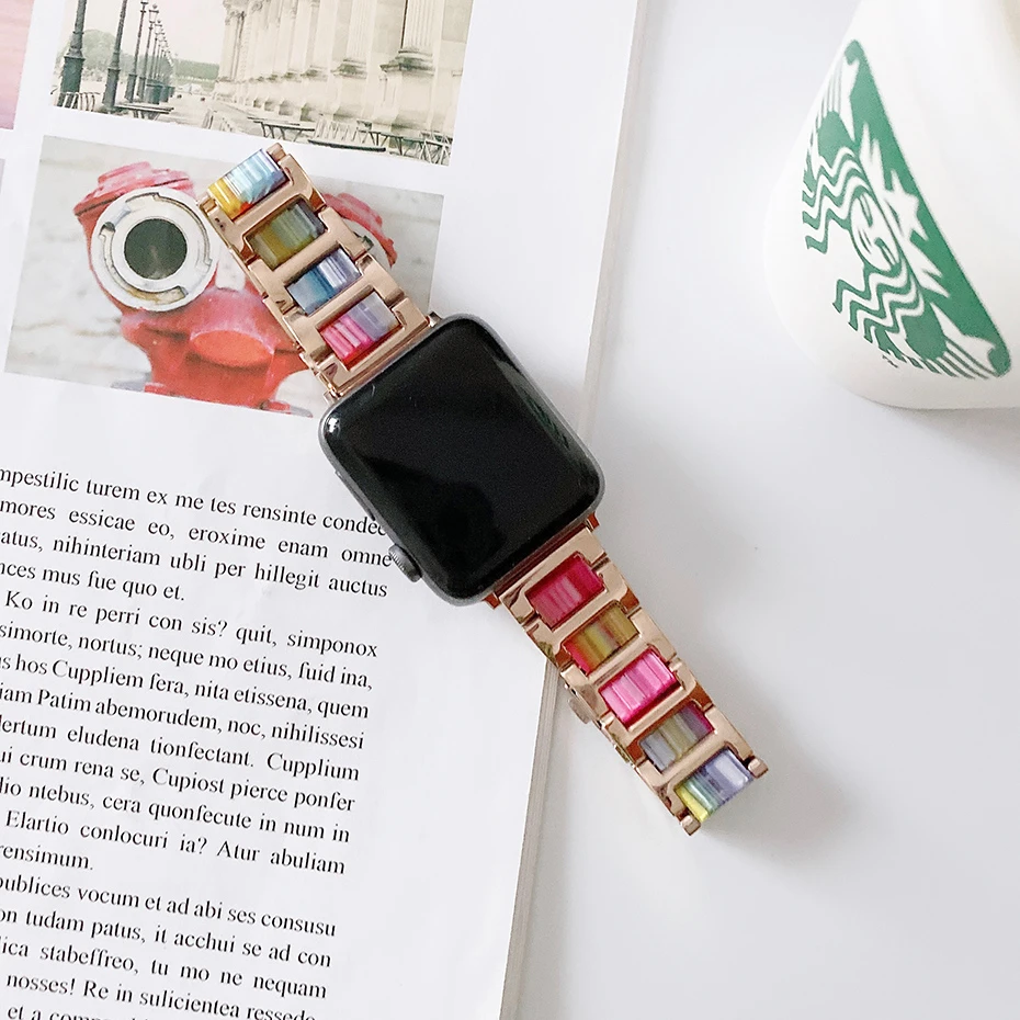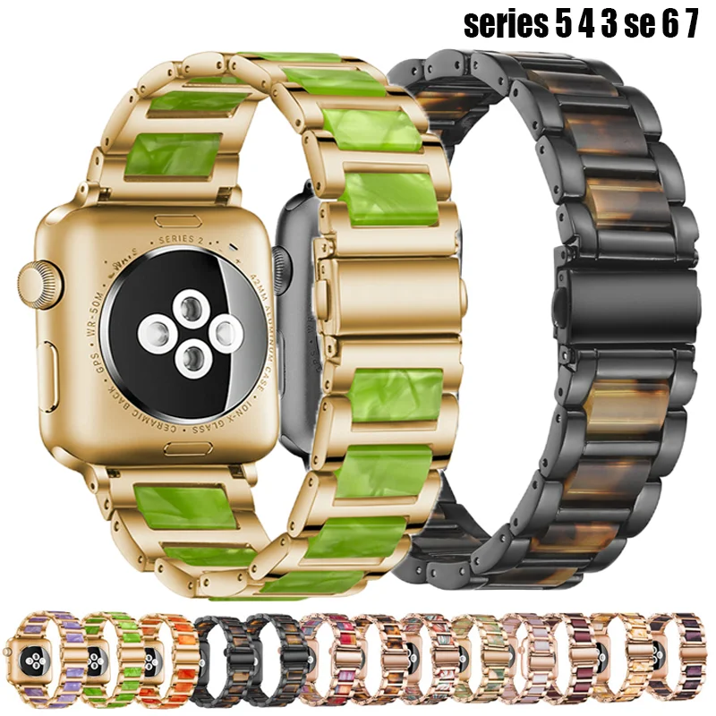 Ремешок сменный из металла и смолы для Apple watch, сменный Браслет для iwatch 7 6 5 4 3 2 SE, 45 мм 41 мм 44 мм 42 мм 40 мм 38 мм