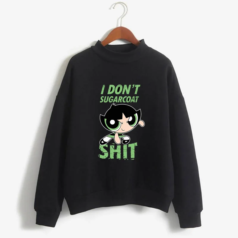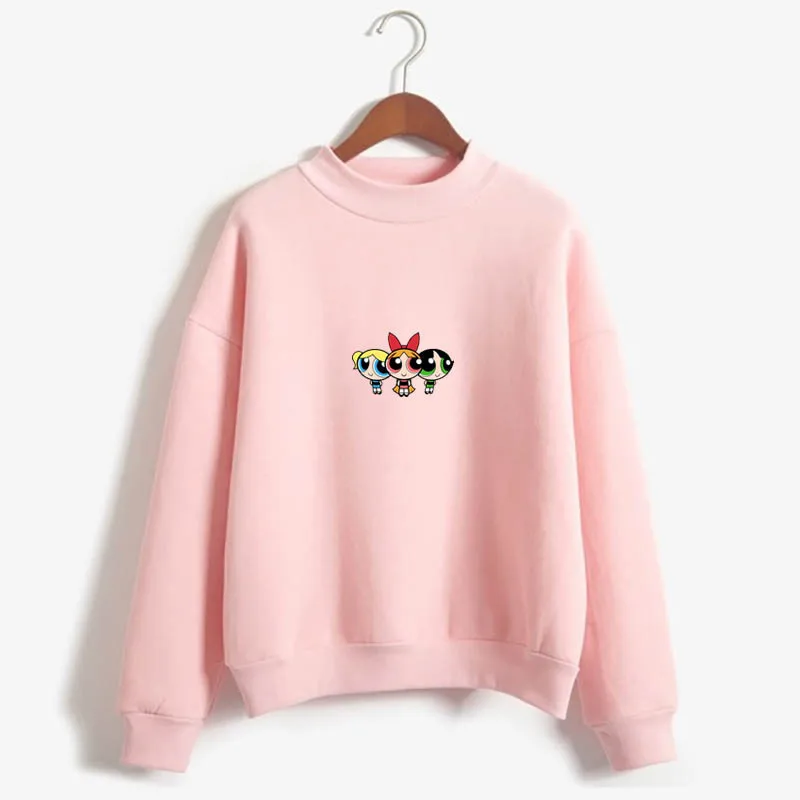 Осень Мультфильм Powerpuff Девушки Женщины Kawai Повседневная Толстовка Мужчины/Женщины Мода Harajuku топы
