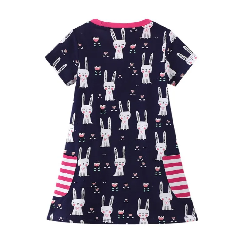 Детская летняя одежда Jumping Meters, хлопковые платья для девочек с принтом кролика, милая туника, детское Повседневное платье, костюм