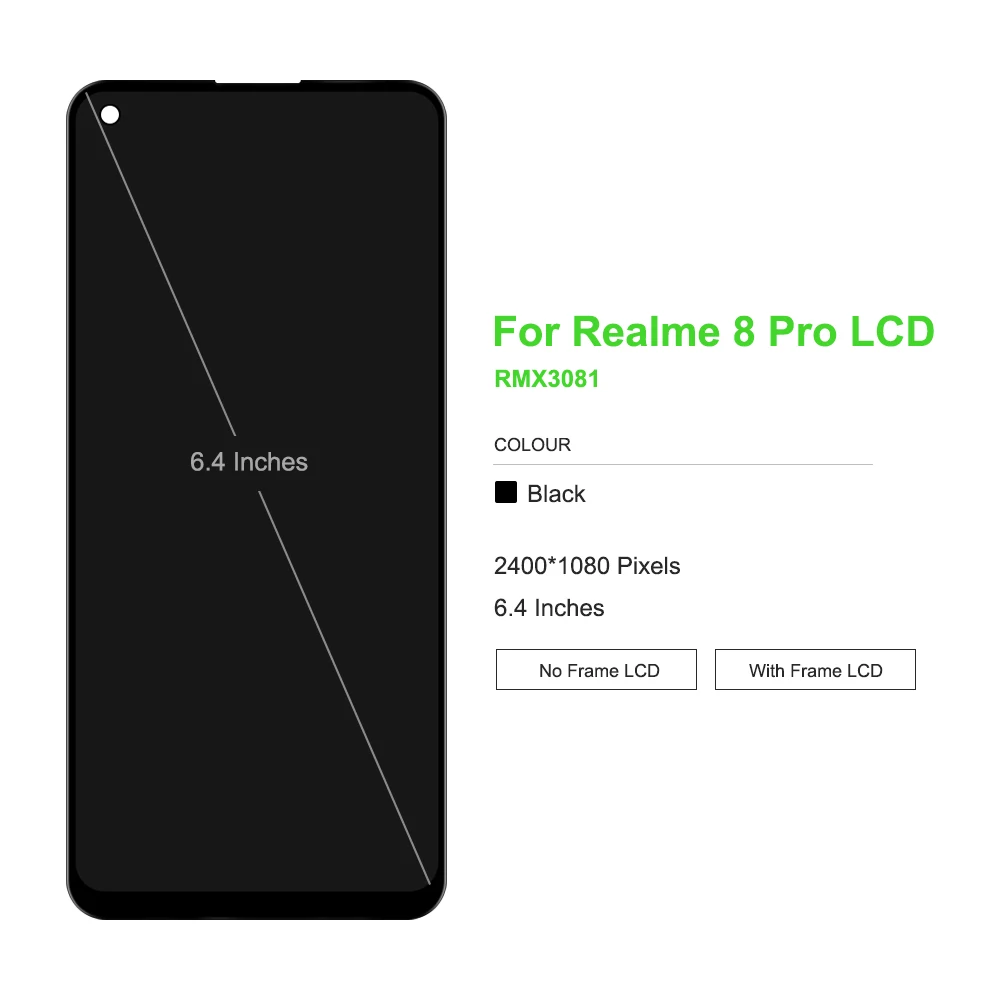 6,4 "оригинал для Oppo Realme8 RMX3085 ЖК-дисплей Замена + сенсорный экран дигитайзер, для Realme 8Pro RMX3081 дисплей, с рамкой