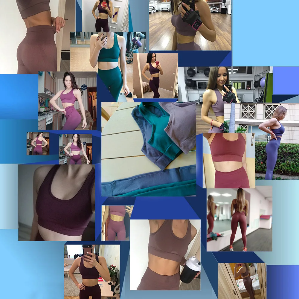 Для женщин спортивные Комлект бесшовной Фитнес бюстгальтер топ + Вы...