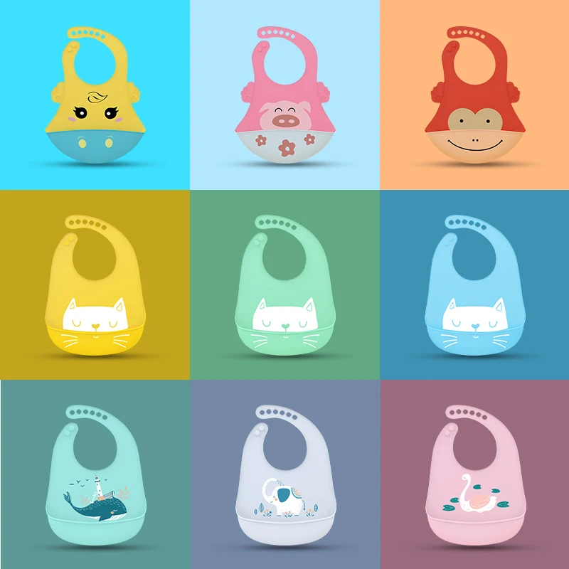Новинка милые детские нагрудники водонепроницаемый силиконовый Нагрудник слюнявчик для кормления младенцев слюнявчик мультяшный Регулируемый Детский фартук с карманом