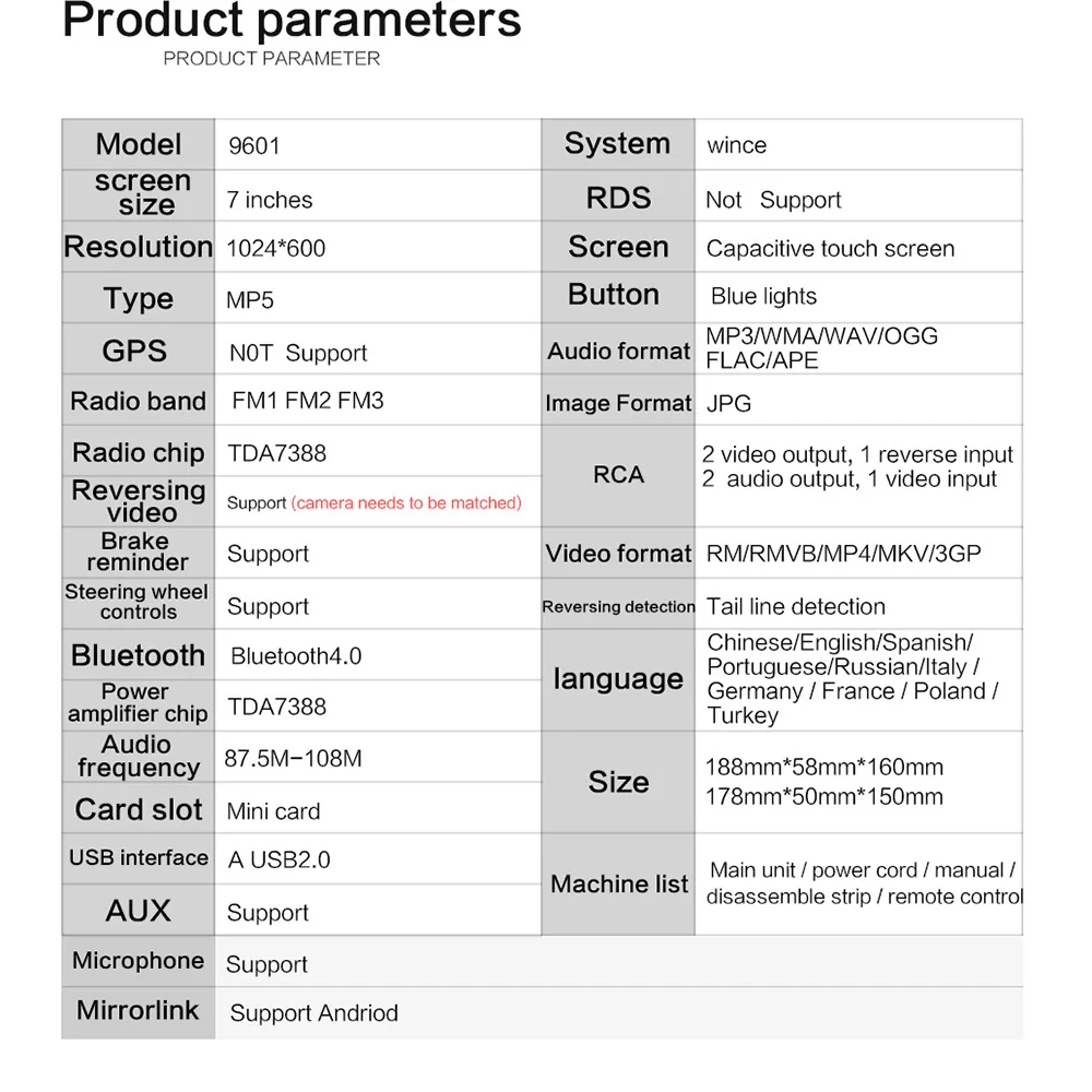 8. Поддержка воспроизведения аудио: DIS, MP3, WMA, ACC, OGG, WAV, RA, AC3, MP2, AMR и т. д.