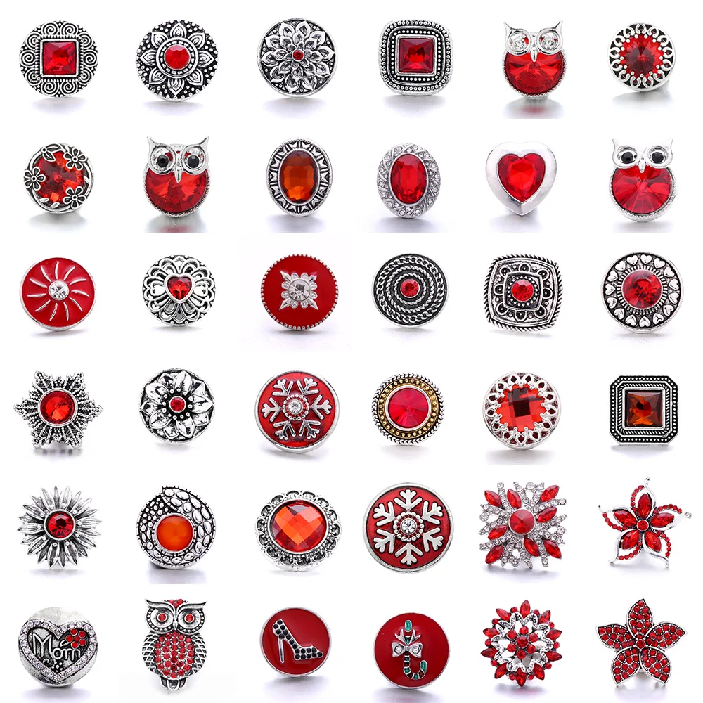 5 шт.лот Новинка 18 мм Ювелирные изделия с красными заклепками со стразами 18 мм кнопки браслет серьги имбирь очаровательные Сменные ювелирные изделия