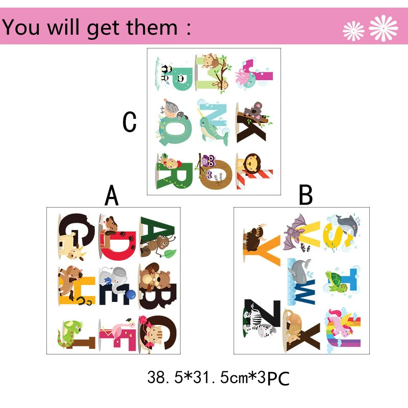 3 шт.компл. милые Мультяшные животные 26 английских букв слова домашний Декор Спальня Гостиная настенные стикеры обои для детской комнаты