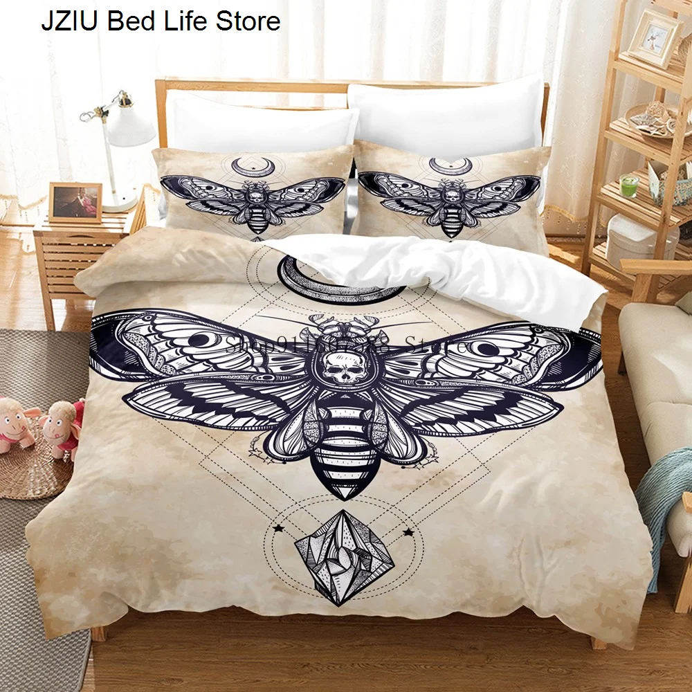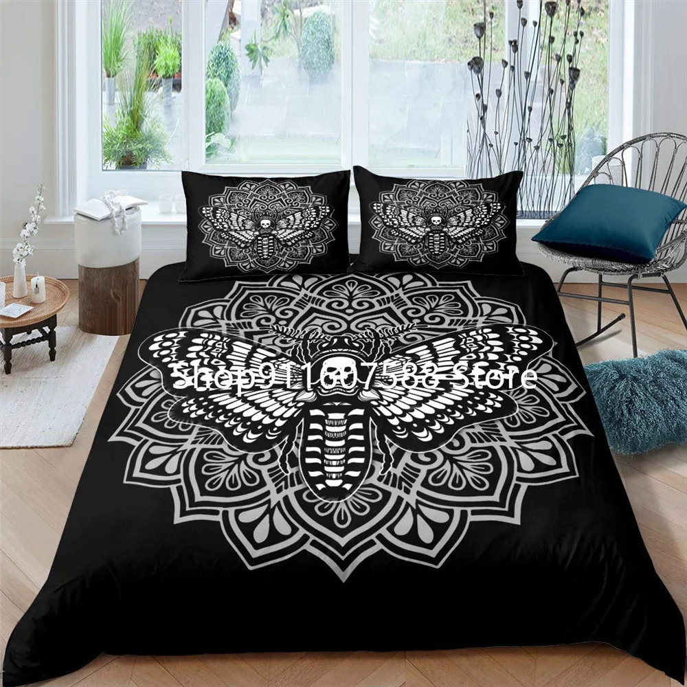 Комплект постельного белья Black Death Moth, готический комплект с пододеяльником и изображением черепа, с бабочкой, комплект из 23 предметов, роскошный дизайн, с Луной и звездами, домашний текстиль