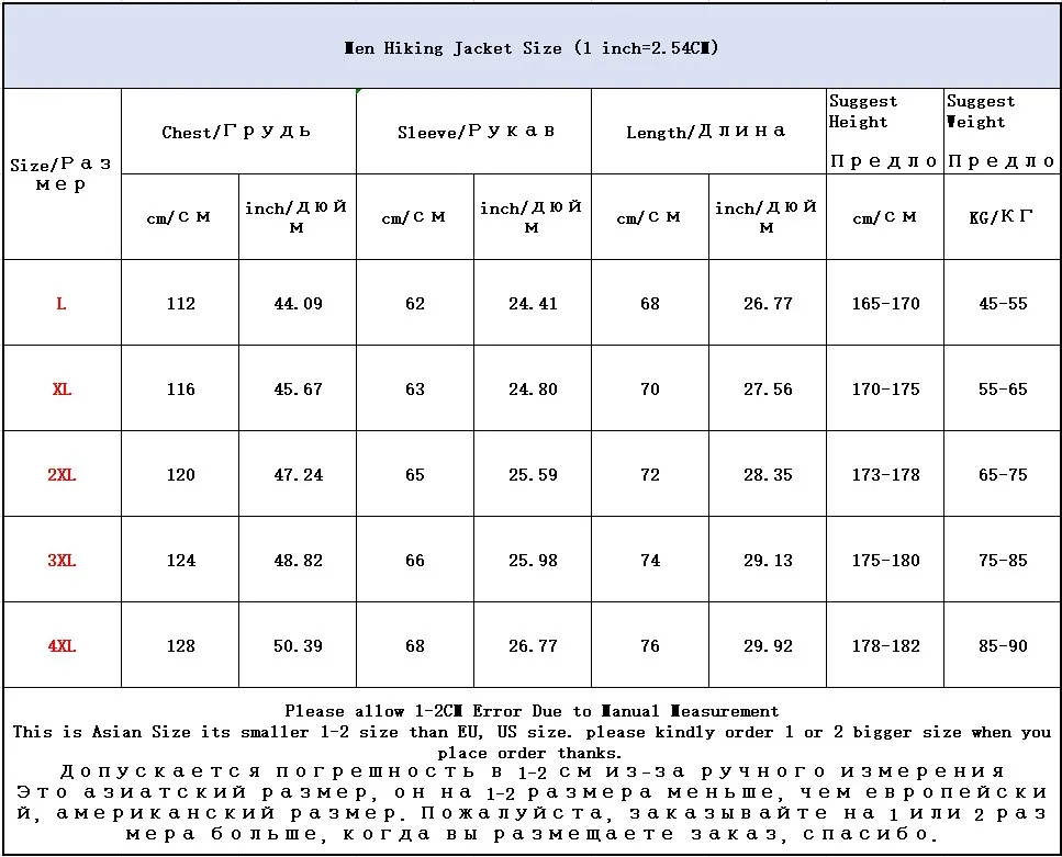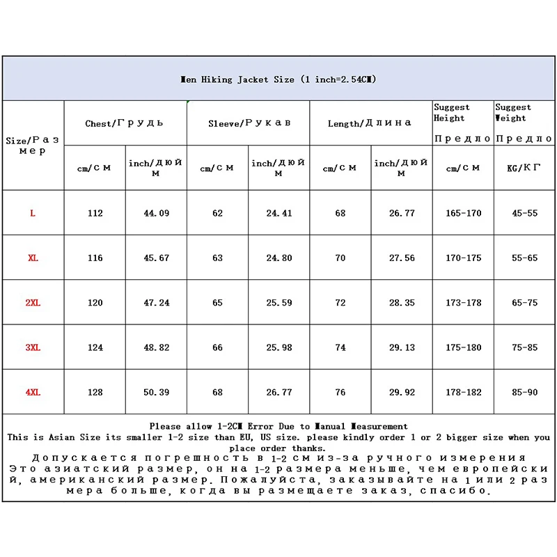 Упаковка: 1 * Мужская походная куртка + 1 * внутренняя куртка (мягкая хлопковая подкладка) Это Азиатский размер на 1-2 размера меньше, чем европейский, американский размер. Пожалуйста, при размещении заказа заказывайте на 1 или 2 размера больше. Спасибо. Пожалуйста, купите больший размер, если вам нравится выбрать эту куртку
