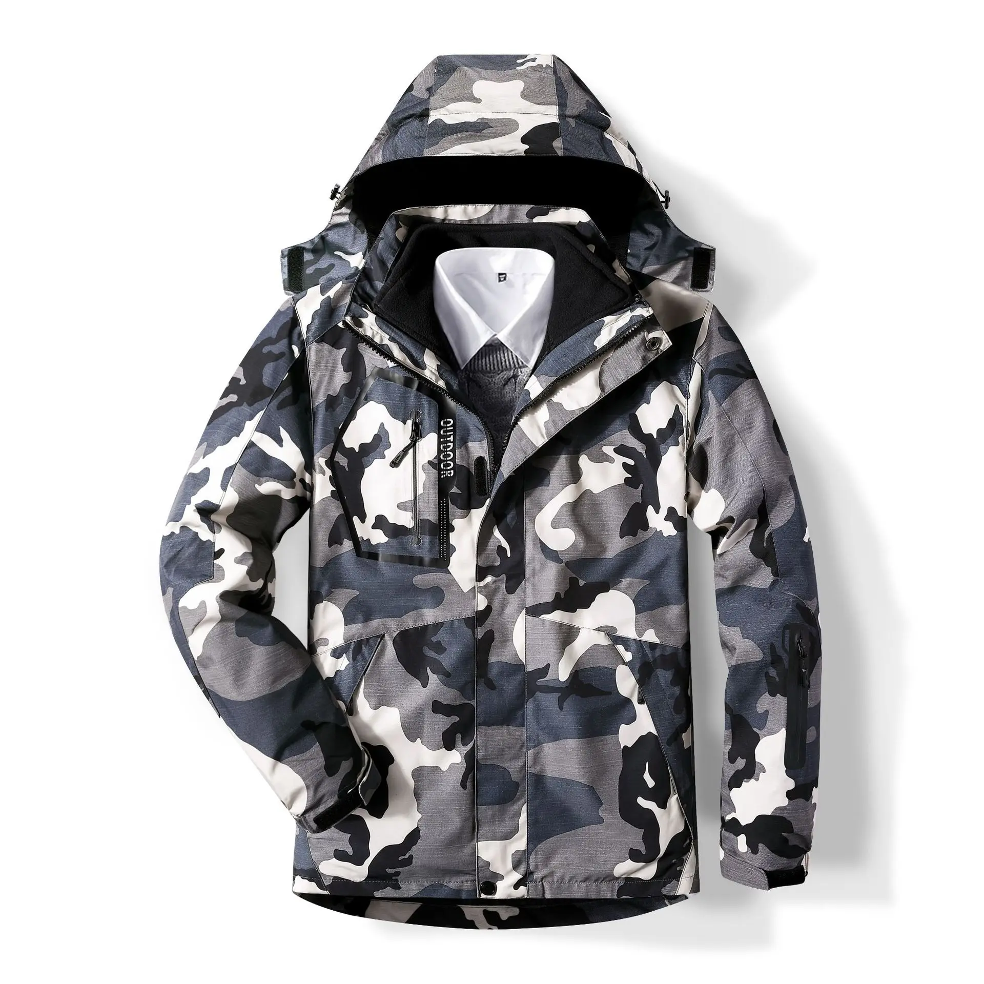 Камуфляжный осенне-зимний костюм для альпинизма 3 в 1 мужской водонепроницаемый ветрозащитный костюм для рыбалки Высококачественная Толстая теплая дышащая куртка