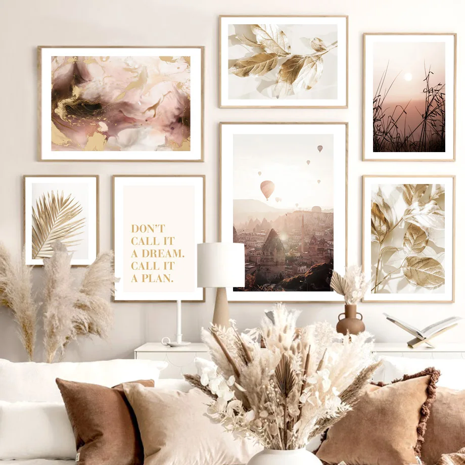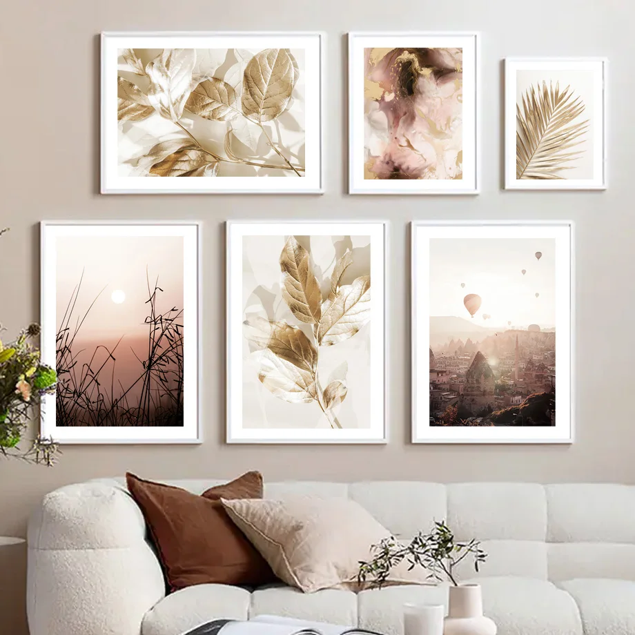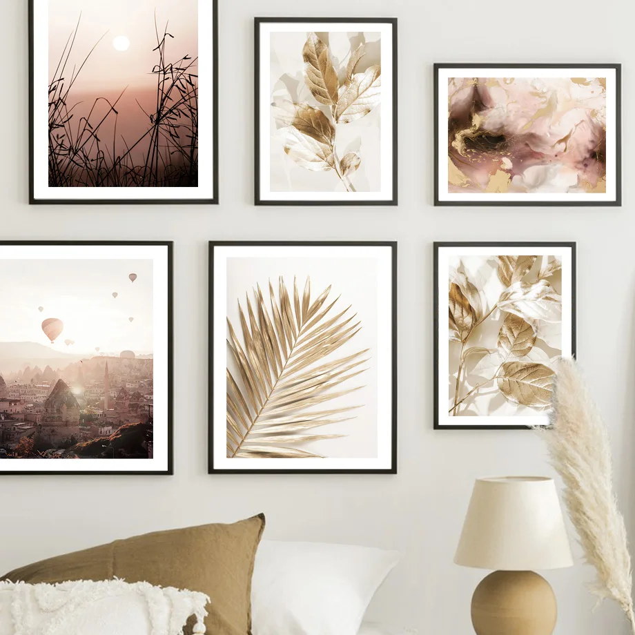 Воздушные шары, искусство печати на холсте, эвкалипт, лист, Золотой закат, Настенная картина, скандинавский постер, Декор, картины для гостиной