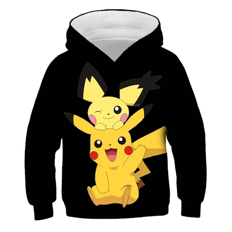 Новинка, свитшот с рисунком Пикачу с длинным рукавом для мальчиков, Детская уличная одежда с рисунком, осенние детские топы для девочек, детская одежда