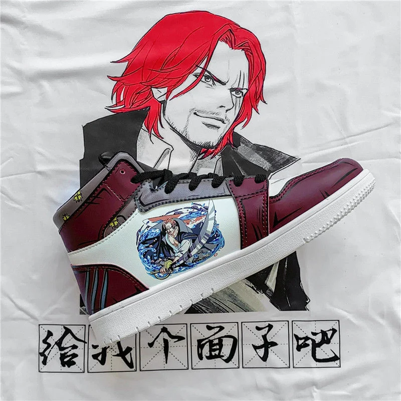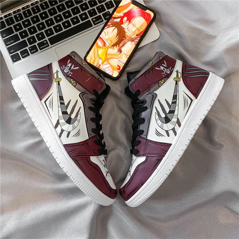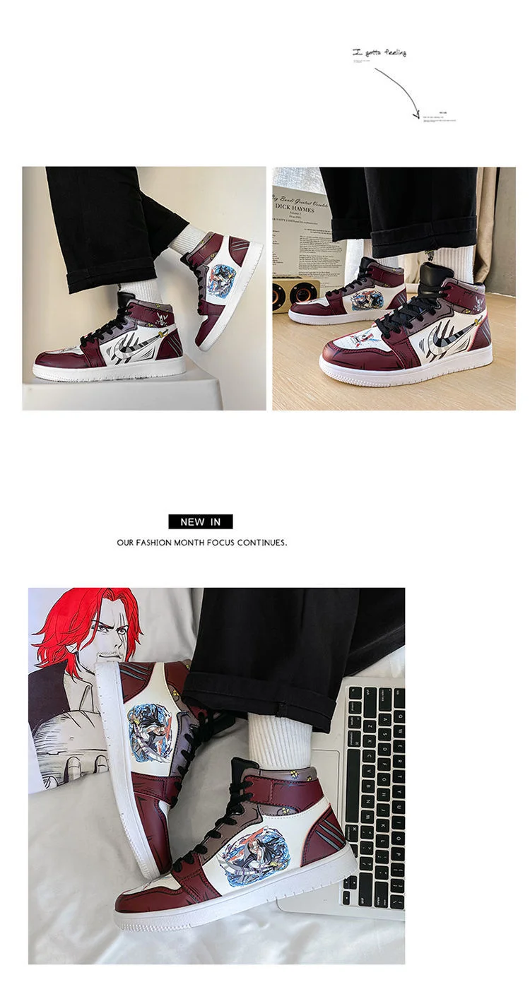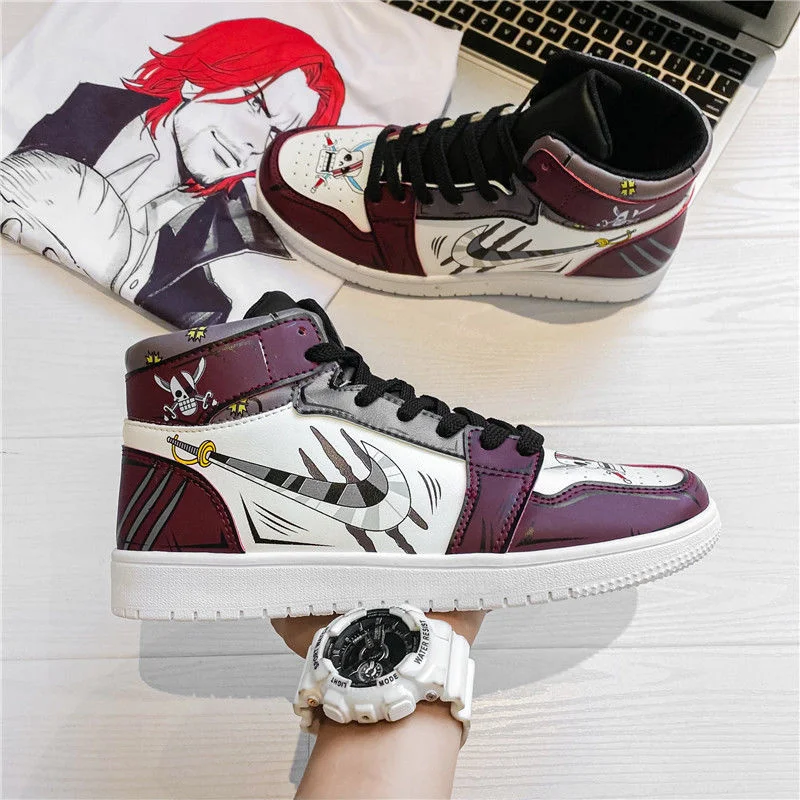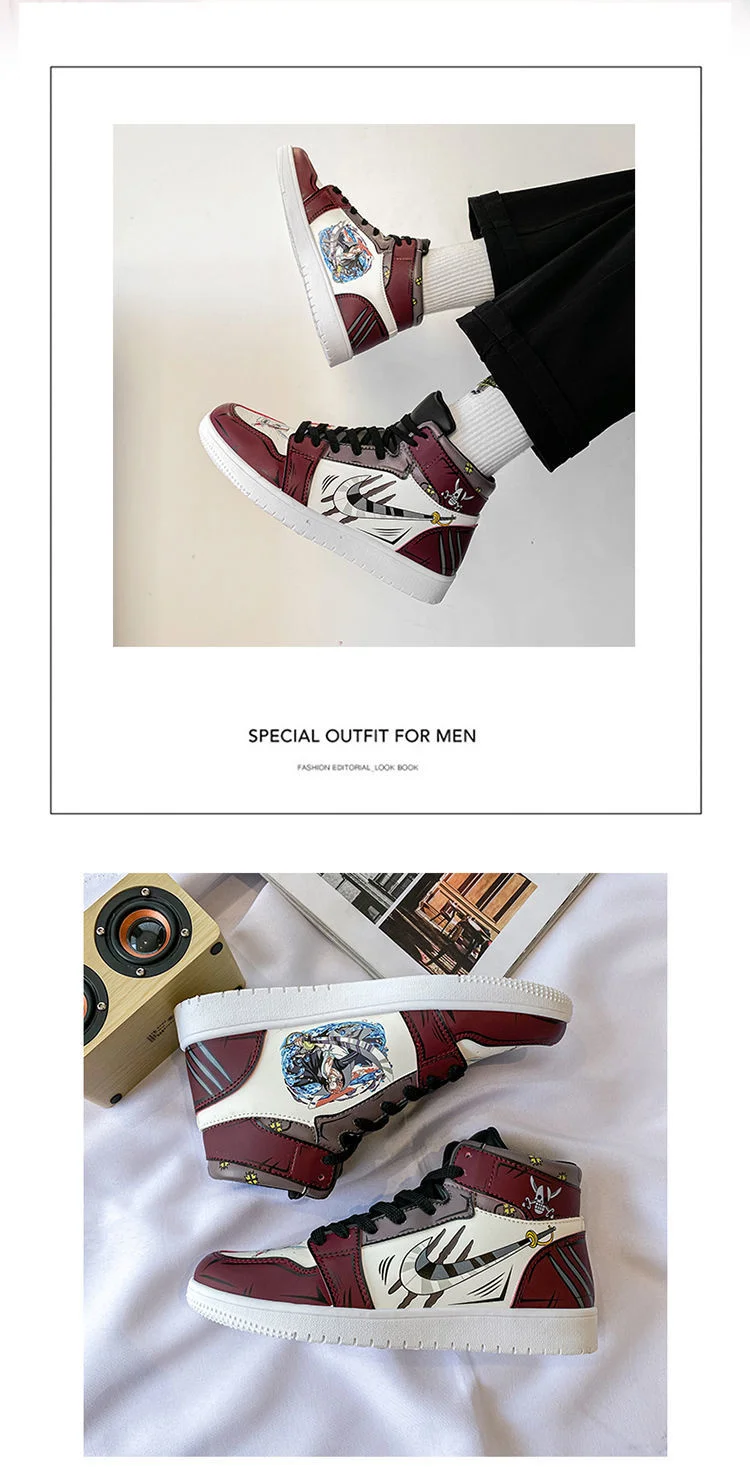 Кроссовки мужские кожаные с резиновой подошвой, слитные кеды с аниме принтом, высокие, повседневная обувь для тенниса