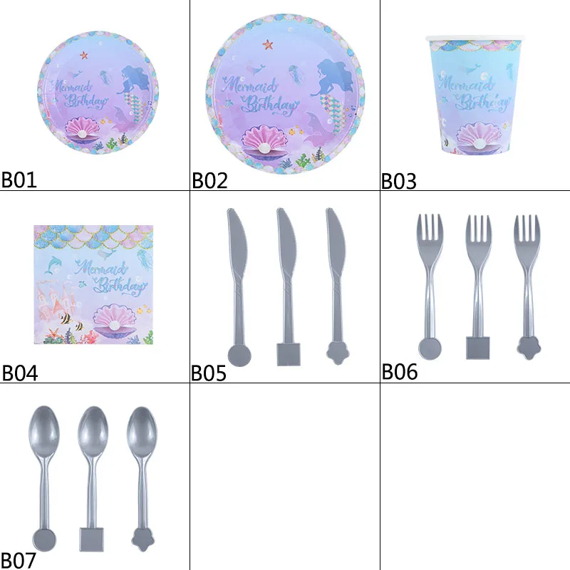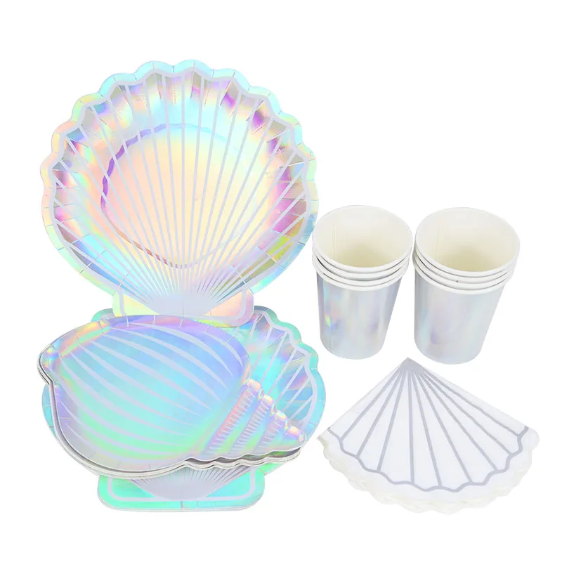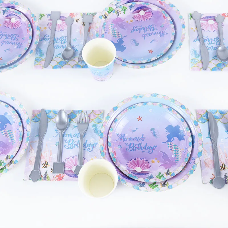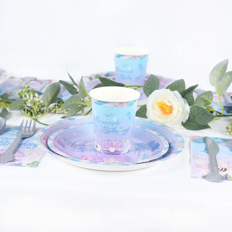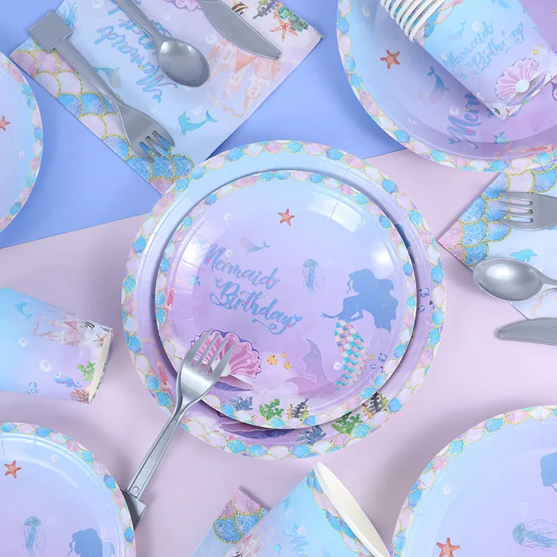 Одноразовая посуда для вечеринки русалка, украшение на день рождения для девочки, лазерная оболочка, бумажная тарелка, чашка для салфеток, подарок для будущей мамы