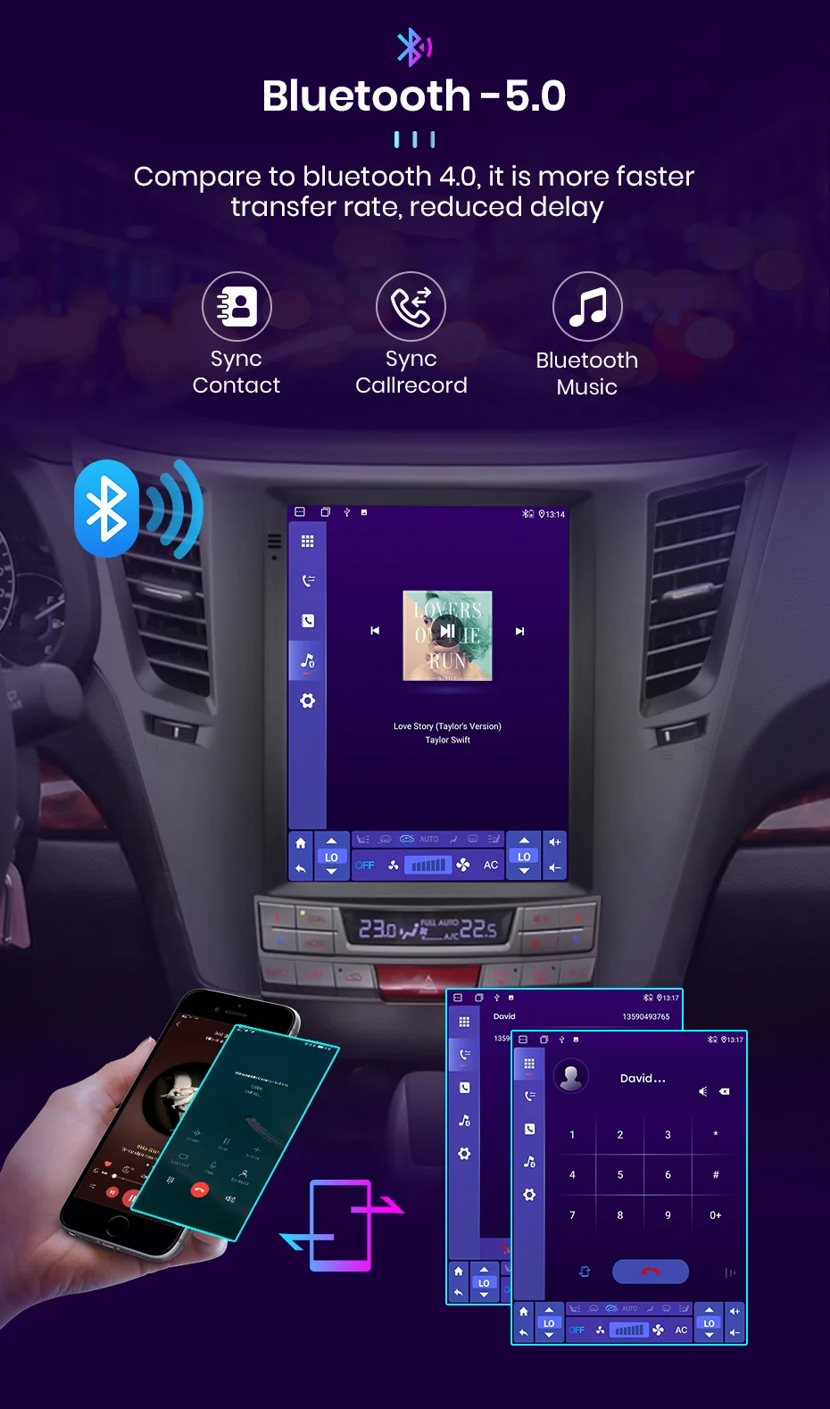 Встроенный беспроводной Carplay и Android авто функция, для беспроводной Carplay, вам просто нужно подключить к телефону с bluetooth; И для Android Auto, вам нужно только использовать usb-кабель для соединения телефона и радио, управления и управления мобильными телефонами через устройство, откройте безопасную жизнь вождения.