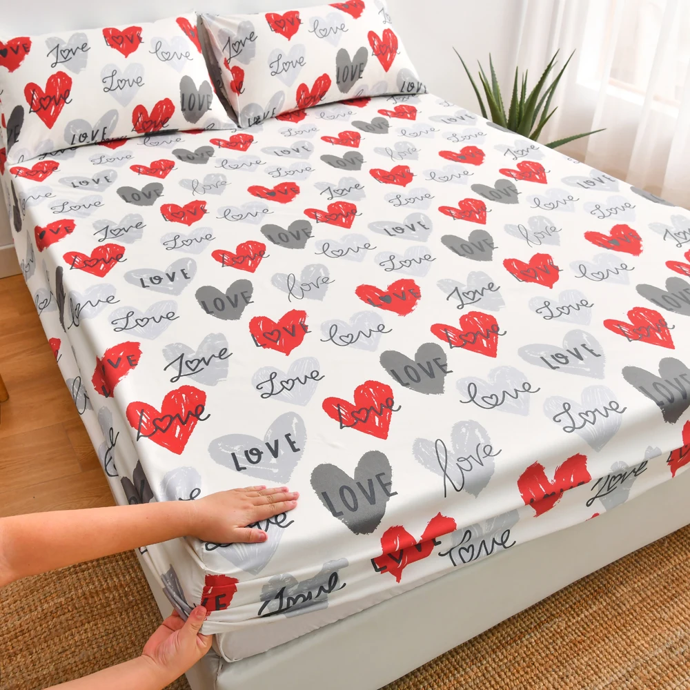 Натяжная простыня Home Red love, простыня с натяжным чехлом из элас...