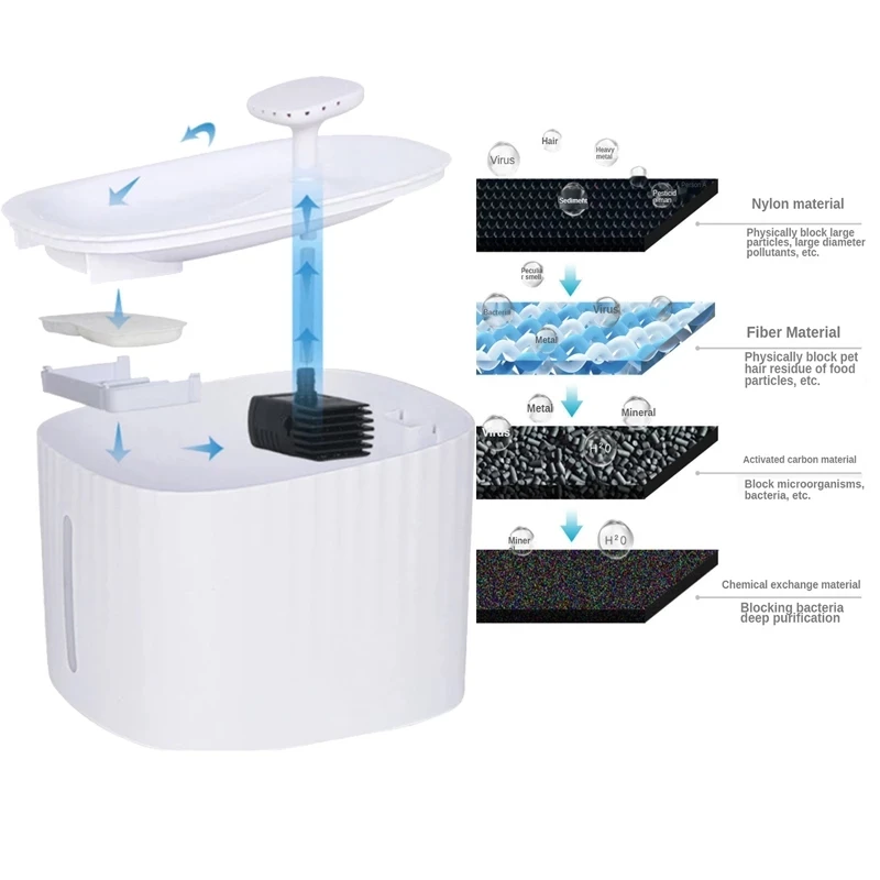 В этом диспенсере для воды используется usb-разъем, который разделен на светильник, а не светильник. Он принимает новую технологию и молчит, когда вода разряжена, что не потревожит сон. В то же время, есть фильтрующий элемент для блокирования загрязнения, так что кошки и собаки могут пить безопасную и безопасную воду. С тех пор они будут иметь хорошее тело и смогут сопровождать своих владельцев в течение длительного времени.