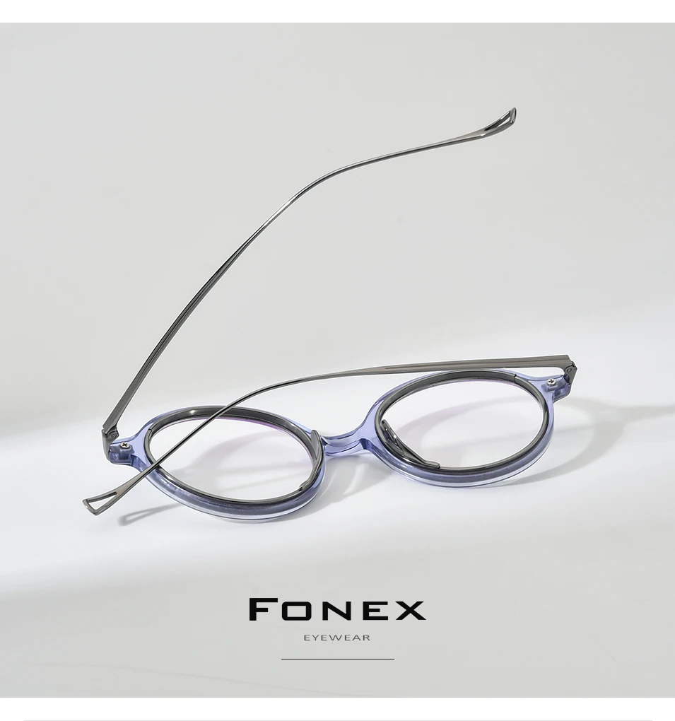 FONEX Оправа из чистого титана для очков , винтажная круглая оправа...